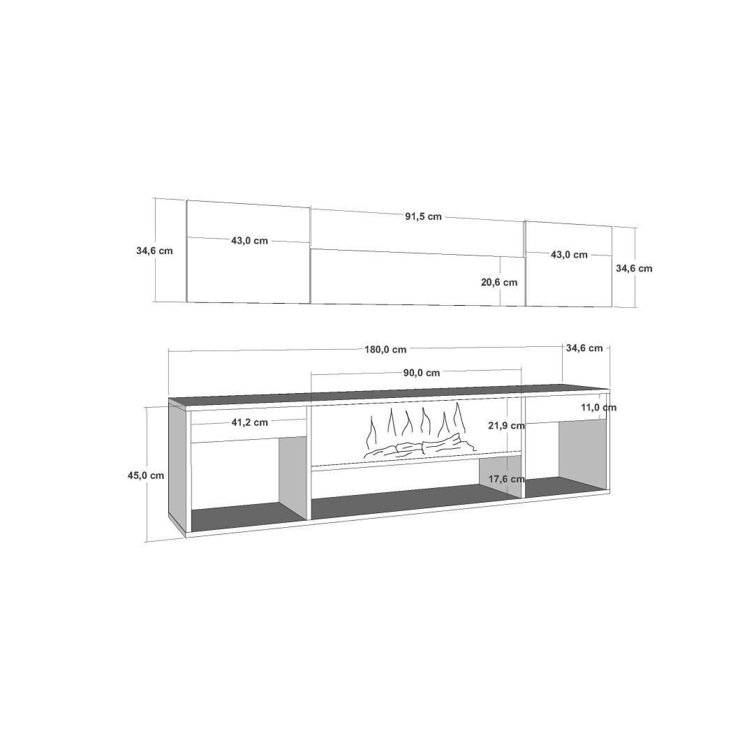 Leveys: 180 cm Korkeus: 45 cm Syvyys: 34,6 cm