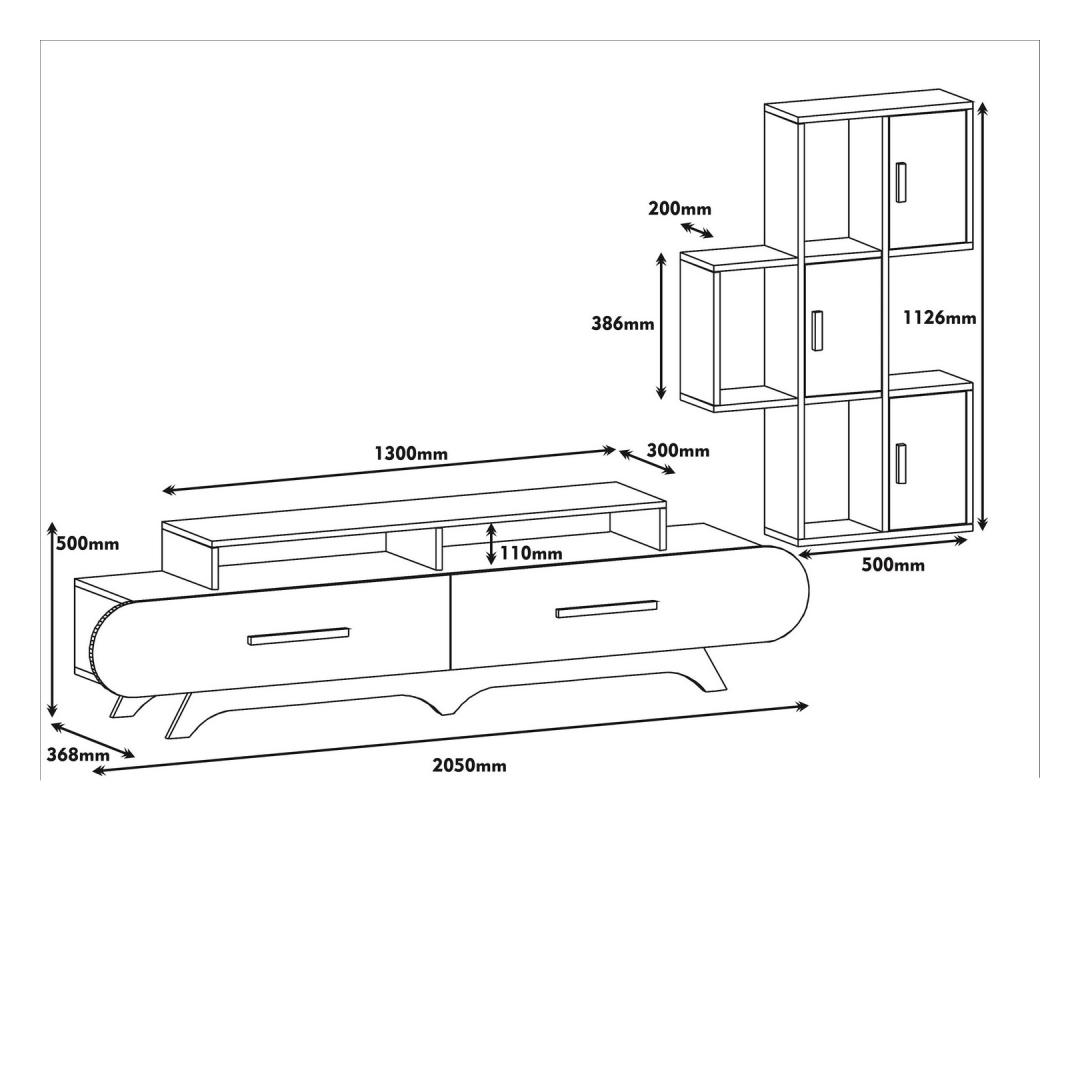 Tv Unit: Width: 205 cm Height: 50 cm Depth: 36,8 cm