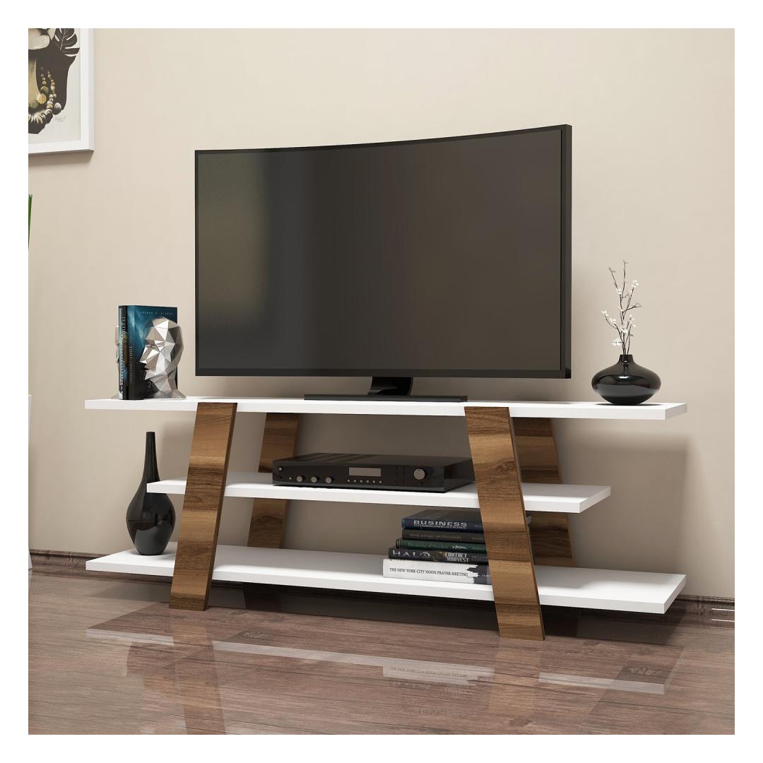 Välistage oma eluruumi kaasaegse ja uudse teleripuldigaMuuda oma elutuba stiilseks ja kaasaegseks pelgupaigaks meie moodsa ja uudse teleripuldi abil. See stiilne ja rafineeritud mööblitükk on loodud selleks, et tõsta teie meelelahutuskogemust, lisades samal ajal teie kodu sisustusele elegantsi. Võrratu vastupidavus ja kvaliteetSee 100% melamiiniga kaetud puitlaastplaadist valmistatud telerialus on valmistatud kestma. 18 mm paksus tagab erakordse tugevuse ja stabiilsuse, mistõttu on see võimeline kandma ka suurimaid lameekraaniga telereid. Võite olla kindel, et see statiiv peab vastu. Rikkalik hoiuruumTänu arvukatele riiulitele pakub see teleritugi piisavalt ruumi kõigi teie meediaseadmete, mängukonsoolide ja tarvikute jaoks. Hoidke oma elutuba segadusteta ja korrastatuna, samas on kõik vajalik käeulatuses. Versatiivne ja ruumi säästev disainMeie televiisoristendi saab hõlpsasti seinale kinnitada, säästes väärtuslikku põrandapinda ning luues puhta ja minimalistliku välimuse. Olenemata sellest, kas teil on väike korter või avar elutuba, see statiiv on disainitud nii, et see sobitub sujuvalt igasse ruumi. Elegantne pähklipuu ja valge viimistlusPähklipuu ja valge värvi kombinatsioon annab sellele teleripuldile kaasaegse ja rafineeritud välimuse. Kontrastsed värvid lisavad teie elutuppa elegantsi, muutes selle teie ruumi keskpunktiks. Tehnilised üksikasjad:Materjal: materjal: 100% melamiiniga kaetud puitlaastplaatPaksus: 18mmLaius: 120cmKõrgus: 42cmSügavus: 33,6cmVärv: pähkelpuu ja valgeKontseptsioon: Kaasaegne - uudsus Värv: Walnut White