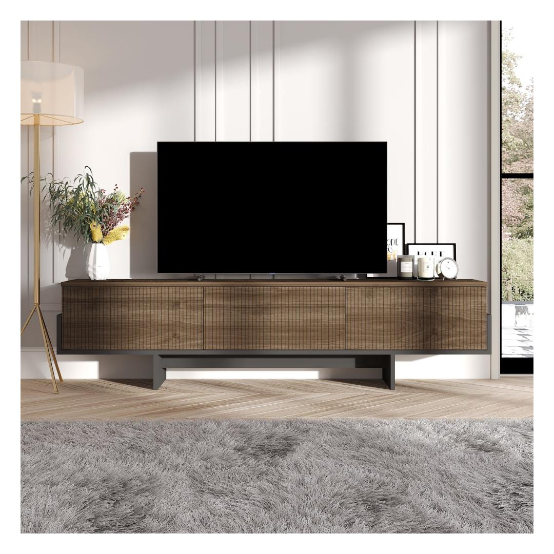Muunna olohuoneesi tyylikkääksi ja organisoiduksi tilaksi upealla TV-telineellämme. Tämä virtaviivainen ja moderni muotoilu kohottaa minkä tahansa huoneen ilmettä ja tarjoaa samalla runsaasti tilaa kaikille viihdetarvikkeillesi.Tyylikäs muotoiluPähkinäpuun ja mustan yhdistelmä antaa tälle TV-telineelle hienostuneen ja nykyaikaisen ilmeen, joka sopii mihin tahansa sisustustyyliin. Puhtaat linjat ja minimalistinen muotoilu lisäävät eleganssia asuintilaasi.Toiminnallinen säilytystila180 cm leveä ja 44,6 cm korkea TV-teline tarjoaa runsaasti säilytystilaa televisiolle, mediasoittimille, pelikonsoleille ja muulle. 18 mm:n paksuinen melamiinipinnoitettu lastulevy takaa kestävyyden ja pitkäikäisyyden.Helppo kootaTämä tv-teline on helppo pystyttää, sillä sen mukana toimitetaan ohjeet ja kaikki tarvittavat kiinnikkeet. Saat viihdekeskuksesi nopeasti käyttöön ja voit alkaa nauttia suosikkiohjelmistasi ja -elokuvistasi.Tekniset tiedot:Materiaali:100 % melamiinipinnoitettu lastulevyPaksuus:18 mmLeveys:180 cmKorkeus:44,6 cmKorkeus:30 cmVäri:Pähkinäpuu ja musta.Tekniset tiedot:Materiaali:100 % melamiinipinnoitettu lastulevyPaksuus:18 mmLeveys:180 cmKorkeus:44,6 cmKorkeus:30 cmVäri:Pähkinäpuu ja musta Väri: Pähkinä Musta