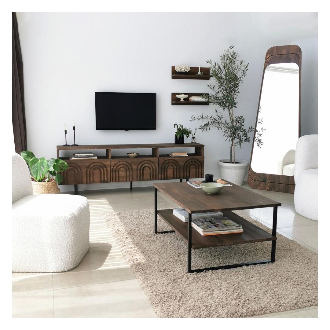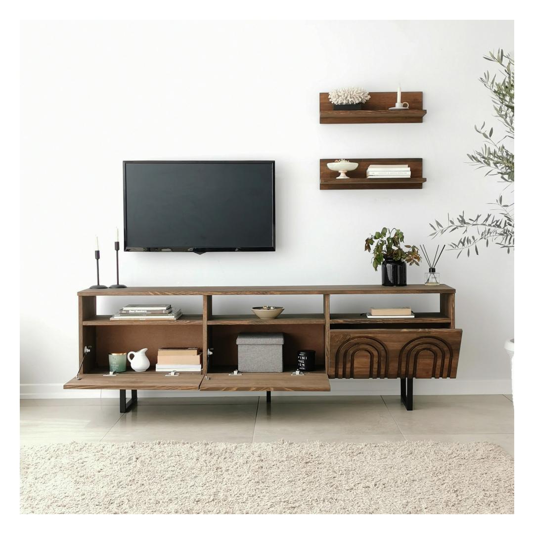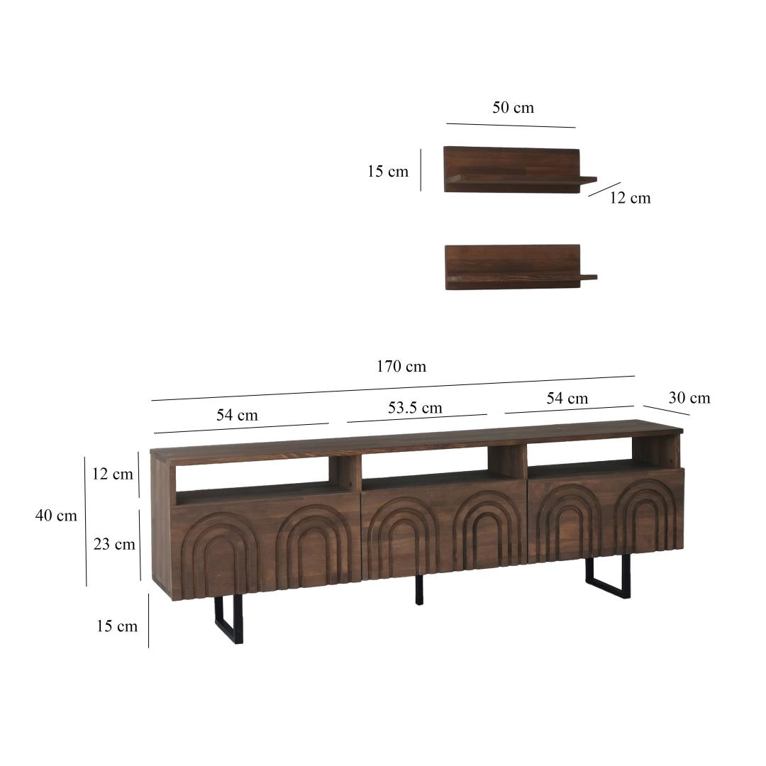 Esittelyssä on upea TV-kaappi, joka on valmistettu 100 % massiivimännystä ja herättää varmasti monenlaisia tunteita. Sen lämmin pähkinäpuun väri lisää eleganssia mihin tahansa huoneeseen, kun taas metallirunko säteilee teollista charmia. Kohota olohuoneesi ajattomalla kauneudellaAmerikkalaisen perinteisen, teollisen, rustiikkisen ja maalaismaisen muotoilun ansiosta tämä tv-kaappi on todella erottuva kappale. Sen tukeva metallikehys ja ruostumattomia metallijalat takaavat kestävyyden, ja antibakteeriset ominaisuudet pitävät perheesi turvallisena ja terveenä.Täydellinen yhdistelmä tyyliä ja toiminnallisuuttaKahdella tilavalla hyllyllä varustettu laite tarjoaa runsaasti tilaa medialle, kirjoille ja kodin sisustukselle. hyllyjen leveys on 50 cm, korkeus 15 cm ja syvyys 12 cm, joten niissä on runsaasti tilaa suosikkituotteiden esillepanoon. 170 cm leveään, 40 cm korkeaan ja 30 cm syvään tv-hyllyyn mahtuu mukavasti televisio. Helppo kokoonpano ja pitkäikäinen laatuVaikka kokoonpano on välttämätöntä, televisiosarjamme on suunniteltu helposti koottavaksi, jotta se olisi vaivaton. 100 % mäntymassiivipuusta valmistettu rakenne takaa pitkäikäisen laadun, joten tämä kappale on arvokas investointi vuosiksi eteenpäin. Materiaali: MetalliJalat: Jalat: Ruostumaton metalliHyllyn koko: Leveys: 50 cm, Korkeus: 15 cm, Syvyys: 12 cm (2 kpl).TV-telineen koko.Yksikön koko: Leveys: 54 cm, Korkeus: 40 cmYksikön hyllyn korkeus: 12 cmJalkojen korkeus: 15 cmVäri: PähkinäPähkinäMuuttaa olohuoneesi tyylikkääksi ja hienostuneeksi olohuoneeksi TV-telineemme avulla. Älä missaa tätä tilaisuutta sisustaa tilasi. Tilaa nyt ja koe tyylikkyyden ja toiminnallisuuden täydellinen yhdistelmä! Väri: pähkinä