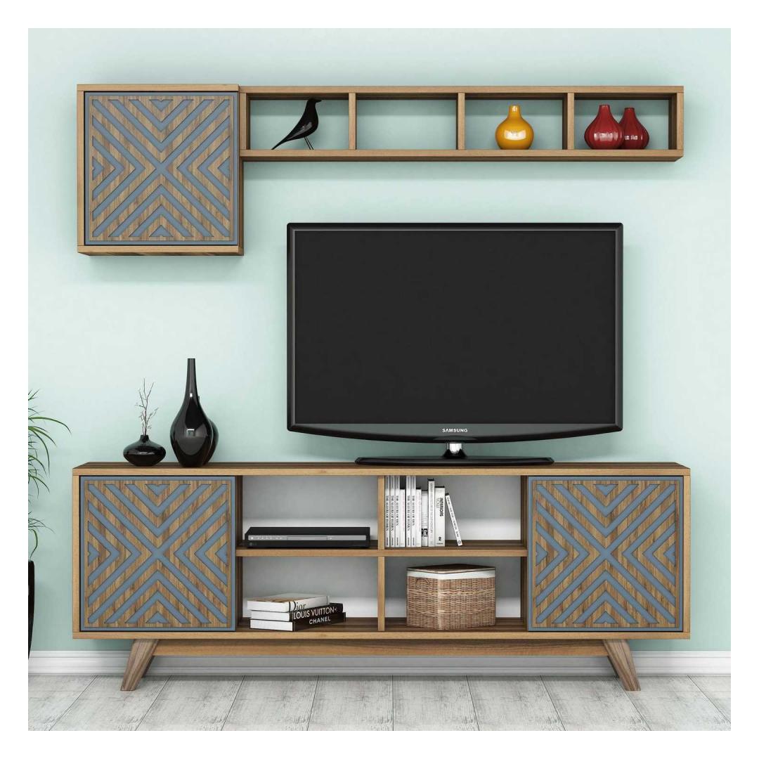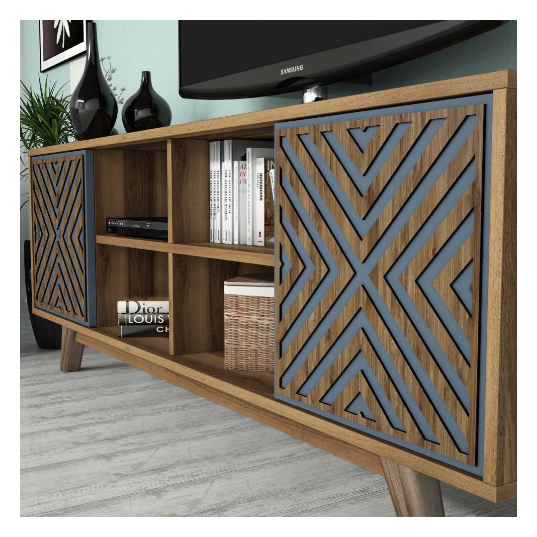 TV laud Inci - Walnut, Blue