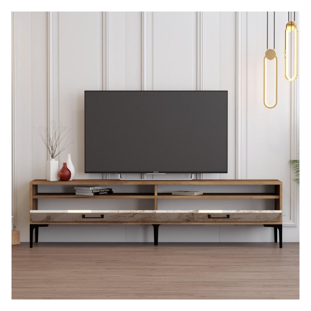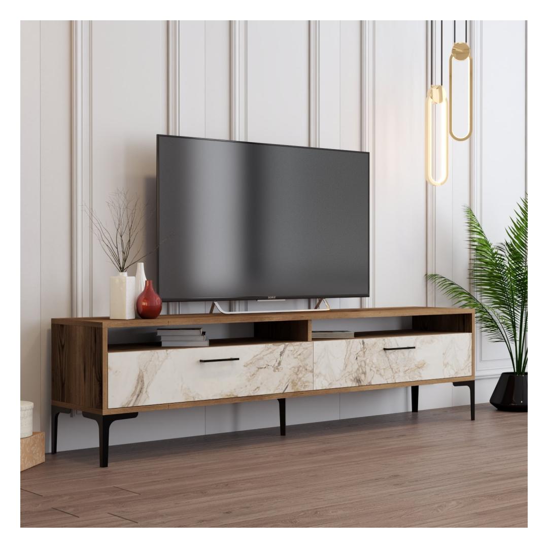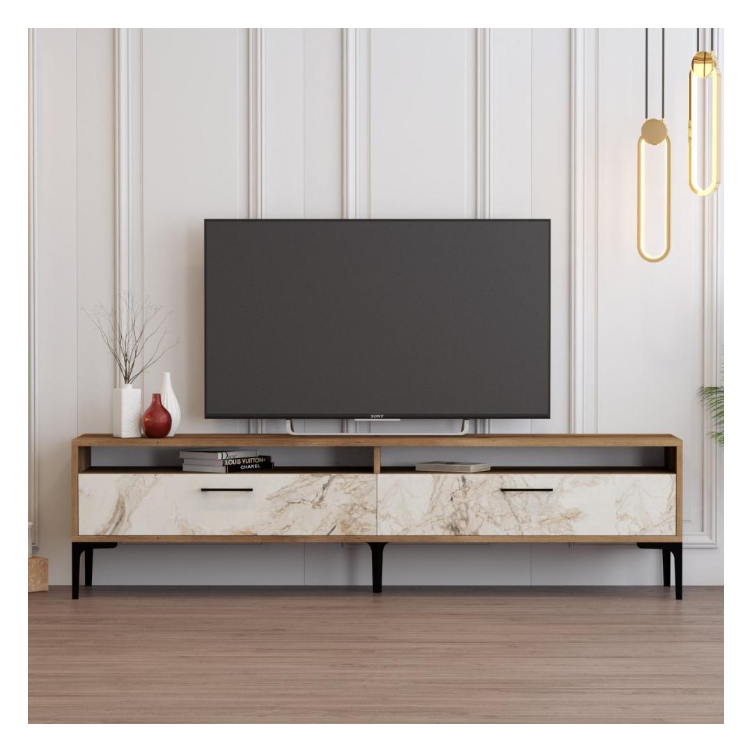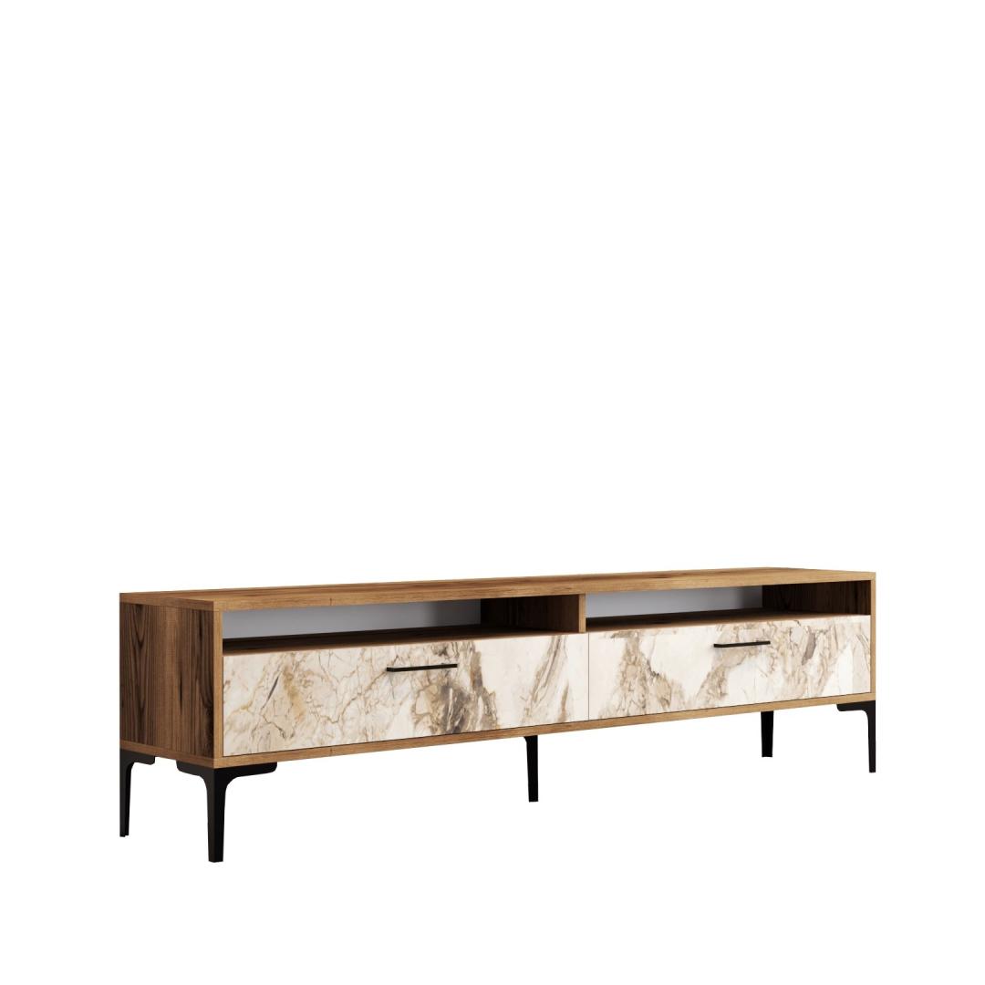 Transformeerige oma eluruum suurepärase televiisorigaTutvustame meie uimastavat televiisorikomplekti, mis tõstab teie eluruumi elegantsi ja rafineerituse uuele tasemele. See ülima täpsusega ja detailidele tähelepanu pöörates valmistatud seade on mõeldud teie meelelahutuskeskuse keskpunktiks. Kogege võrratut vastupidavust ja kvaliteetiValmistatud 100% melamiiniga kaetud puitlaastplaadist, on see televiisor ehitatud nii, et see peab vastu aja katsumusele. Selle 18 mm paksus tagab erakordse tugevuse ja vastupidavuse, pakkudes teile pikaajalist investeeringut, mis teenib teid aastaid. Pähklipuu ja valge marmori täiuslik seguPähklipuu ja valge marmori värvide kombinatsioon loob visuaalselt silmatorkava kontrasti, mis lisab igasse ruumi modernsust ja luksust. Rikkalik pähklipuu viimistlus kiirgab soojust ja rafineeritust, samal ajal kui valge marmorist aktsendid toovad kaasaegset hõngu. Rikkalik hoiuruum teie meelelahutusvahendite jaoks180 cm laiuse, 35 cm kõrguse ja 47 cm sügavusega telerikapp pakub rohkesti hoiuruumi, et hoida oma meelelahutusvahendeid organiseeritult ja kergesti kättesaadavana. Jätke hüvasti segaste kaablite ja segaste eluruumidega ning nautige puhast ja korrastatud ruumi, mis soodustab lõõgastumist ja naudingut. Tehnilised üksikasjad:Materjal: Materjal: Materjal: Materjal: Materjal: Materjal: Materjal: Materjal: materjal: 100% melamiiniga kaetud puitlaastplaatPaksus: 18 mmLaius: 180 cmKõrgus: 35 cmSügavus: 47 cmVärv: Pähklipuu ja valge marmor Värv: Walnut White Marble