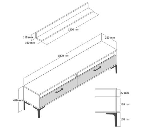TV Stand: Width: 180 cm Height: 47 cm Depth: 35 cm