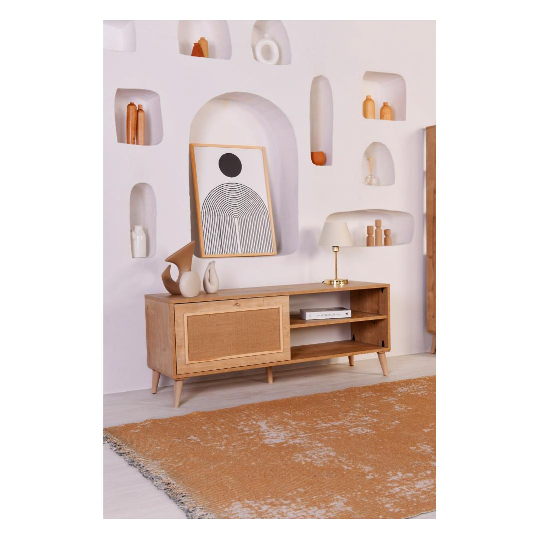 Välistage oma eluruumi stiilse ja funktsionaalse teleripuldigaMuuda oma elutuba mugavuse ja stiili paradiisiks meie peen teleripuldi abil. See ülima täpsusega valmistatud ja täiuslikuks disainitud teleripult on ideaalne täiendus teie kodule. Selle stiilne ja moodne disain sulandub vaevata mis tahes sisustusega, lisades teie eluruumile elegantsi.Võrratu vastupidavus ja kvaliteetValmistatud 100% melamiiniga kaetud puitlaastplaadist, see televiisoripult on ehitatud kestma. Melamiinkate mitte ainult ei suurenda selle vastupidavust, vaid lisab sellele ka kauni viimistluse, andes sellele esmaklassilise välimuse. Metalljalad tagavad suurepärase stabiilsuse ja toe, tagades, et teie teler ja muud meediaseadmed on turvaliselt paigas. Rikkalik hoiuruumTänu oma heldele mõõtmetele pakub see teleripult piisavalt ruumi kõigi teie meelelahutusvahendite jaoks. Laiale pealispinnale mahuvad kuni 55-tollised telerid, samas kui avarad riiulid pakuvad palju ruumi kaablikarbile, mängukonsoolidele, dvd-mängijale ja muule. Hoidke oma elutuba korrastatuna ja segadusteta selle mitmekülgse teleripuldiga. Tõstke oma vaatamiskogemustKogege ülimat mugavust oma lemmiksaateid ja -filme vaadates. Teleri statiivi optimaalne kõrgus tagab, et teler on silmade kõrgusel, vähendades teie kaela koormust ja pakkudes nauditavamat vaatamiskogemust. Istuge maha, lõõgastuge ja sukelduge meelelahutusmaailma meie erakordse teleripuldi abil. Tehnilised üksikasjad:Materjal: materjal: 100% melamiiniga kaetud puitlaastplaatMetallist jalad lisavad stabiilsustJalgade kõrgus: 15 cmLaius: 138 cmKõrgus: 55 cmSügavus: 41 cmVärv: Tamm Värv: Oak