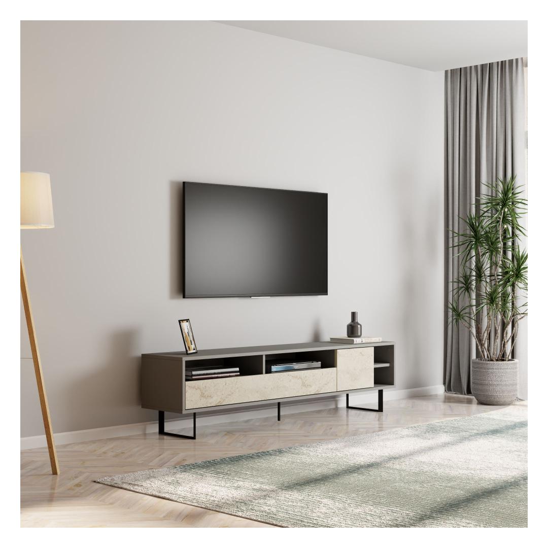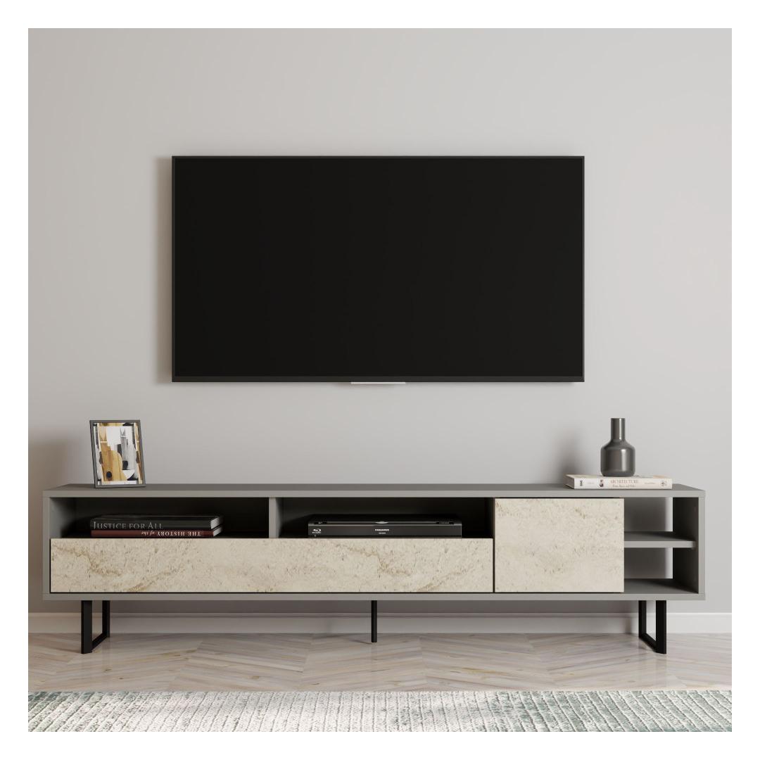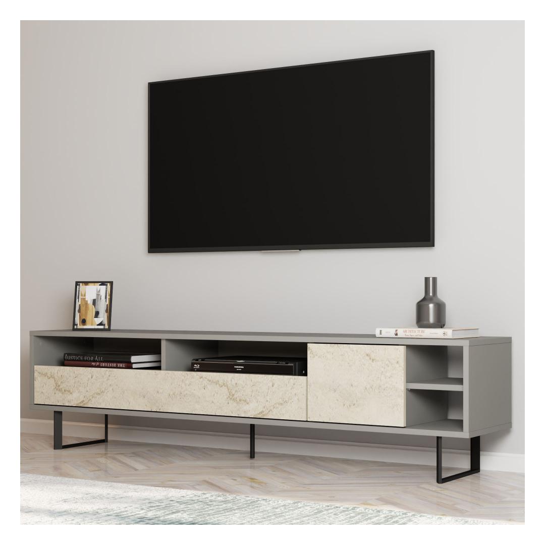 TV-pöytä Luga - Harmaa, Travertiini