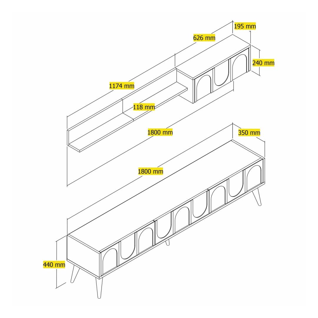 TV Stand: Width: 180 cm Height: 44 cm Depth: 35 cm