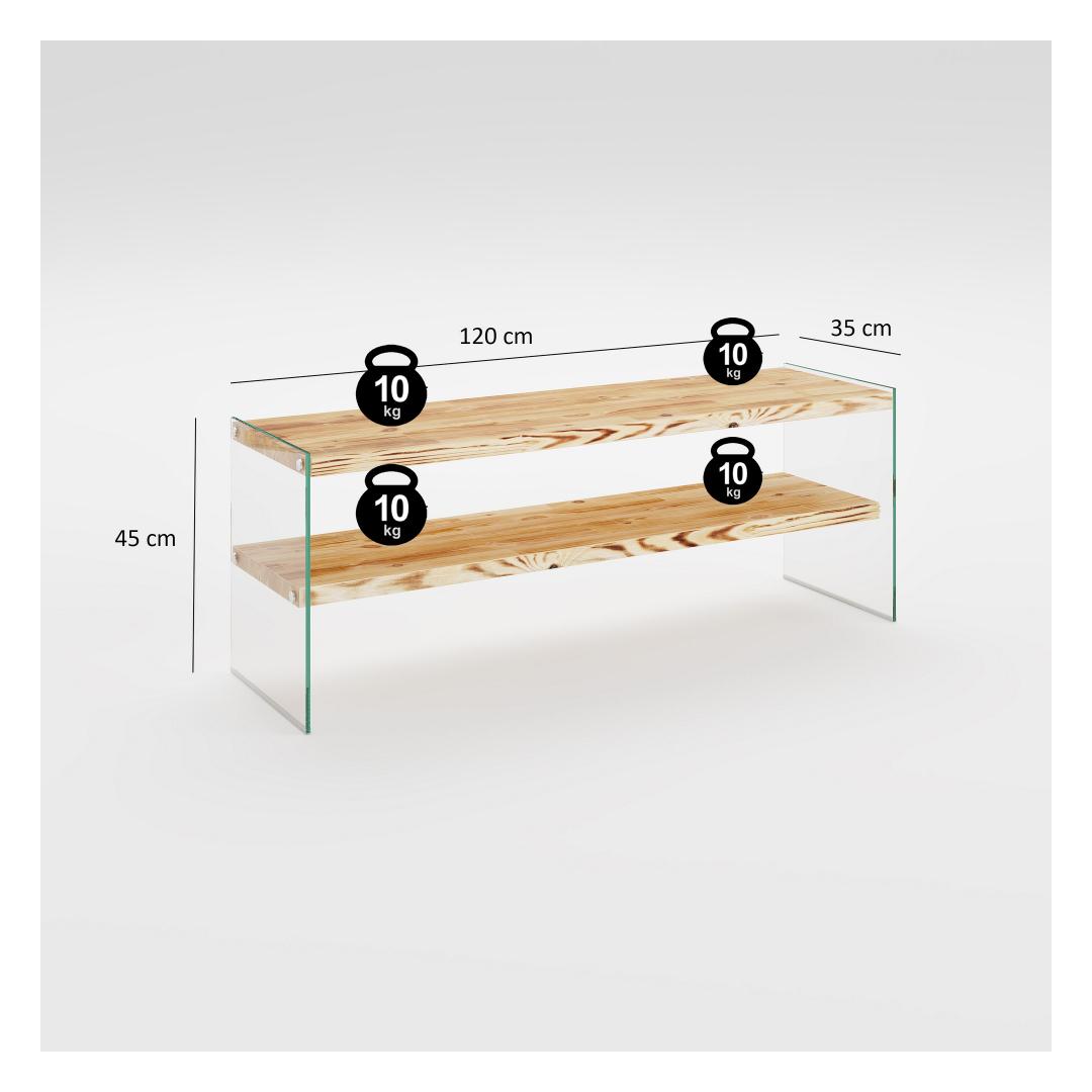 Paranna asuintilaasi modernilla ja tyylikkäällä TV-kaukosäätimelläMuuta olohuoneesi moderniksi olohuoneeksi upealla TV-kaukosäätimellä. Tämä 100-prosenttisesti massiivisesta männystä valmistettu kappale huokuu eleganssia ja kestävyyttä. Tyylikäs ja moderni muotoilu sopii täydellisesti niille, jotka arvostavat uutuutta kodin sisustuksessa. Koe vertaansa vailla oleva laatu ja lujuus8mm paksu TV-teline on rakennettu kestämään. Runko on valmistettu 100% karkaistusta lasista maksimaalisen lujuuden ja turvallisuuden takaamiseksi. Jokaisen hyllyn maksimikuormituskapasiteetti on 20 kg, mikä tarjoaa runsaasti tilaa kaikille viihdelaitteillesi. Runsaasti säilytystilaa mukavuutesi vuoksiLukuisten hyllyjen ansiosta tämä TV-teline tarjoaa runsaasti säilytysmahdollisuuksia medialle, dvd-levyille ja muille tarvikkeille. Pidä olohuoneesi järjestyksessä ja sotkuisena tämän toiminnallisen ja tyylikkään esineen avulla. Monipuolinen ja tilaa säästävä muotoiluTämä tv-hylly voidaan helposti asentaa seinälle, mikä säästää arvokasta lattiatilaa ja antaa huoneellesi siistin, virtaviivaisen ilmeen. Kompaktit mitat (120 cm leveä, 45 cm korkea ja 35 cm syvä) tekevät siitä sopivan minkä tahansa kokoiseen huoneeseen tai pohjaratkaisuun. Lisää ripaus eleganssia tammen värilläSeinäyksikkö on saatavana kauniissa tammen värissä, joka lisää lämpöä ja eleganssia olohuoneeseesi. Yksivärinen konsepti takaa, että se sulautuu saumattomasti kaikkiin olemassa oleviin huonekaluihin tai sisustustyyliin. Karkaistua lasia: 100 % karkaistua lasiaLeveys: 120 cmKorkeus: 45 cmSyvyys: 35 cmMaks. kantavuus: 20 kg hyllyä kohtiVäri: Tammi väri(t)Konsepti: Värikäs, moderni - uutuus Väri: Tammi