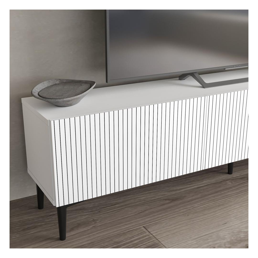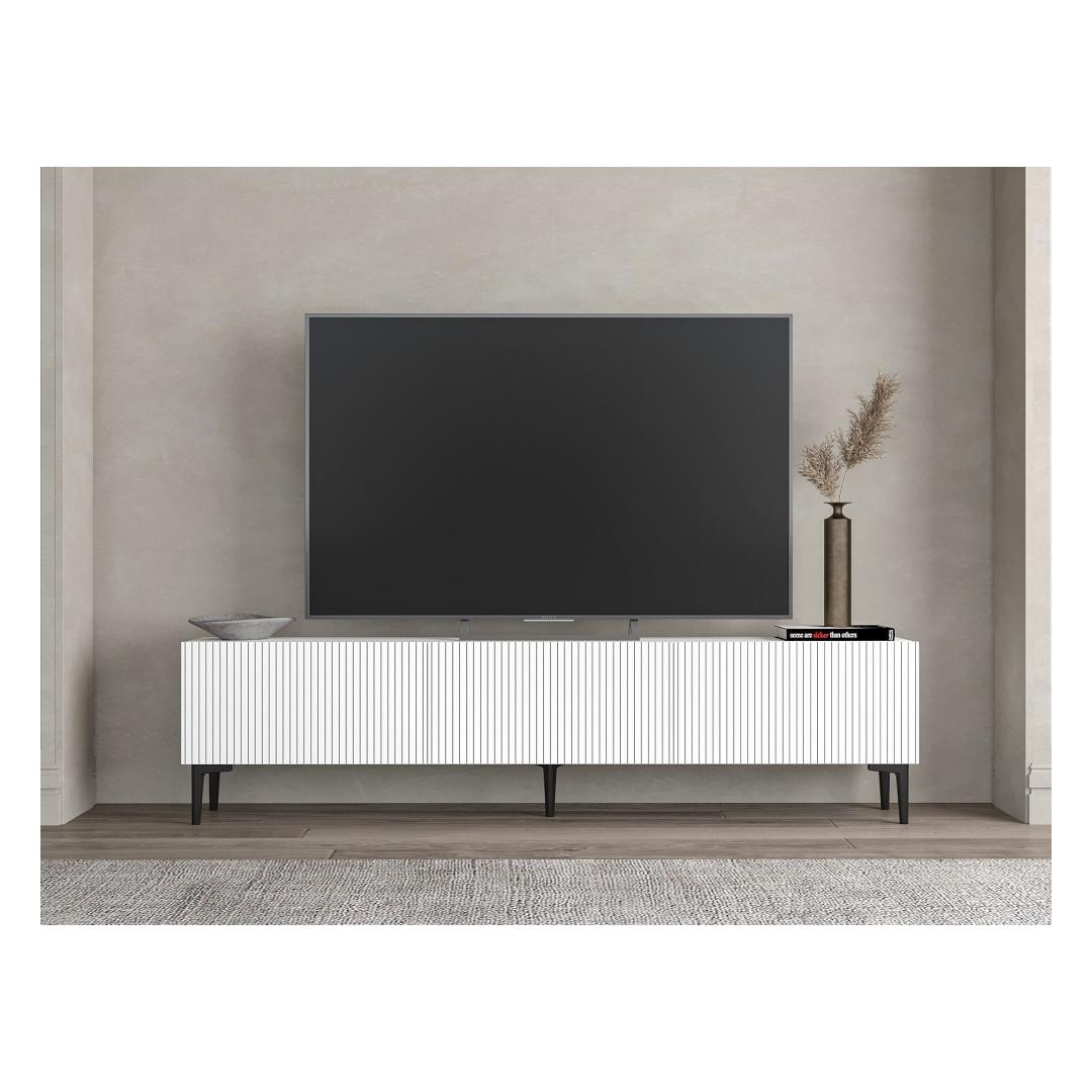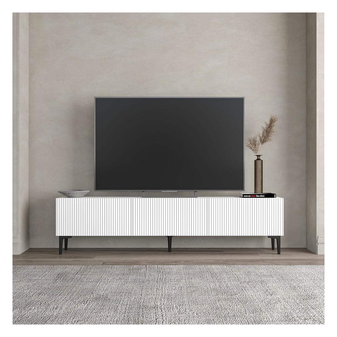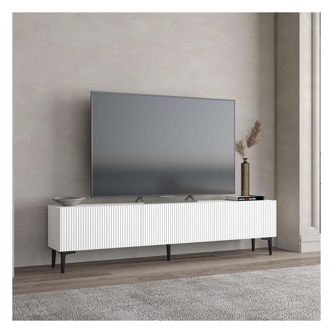 Muunna olohuoneesi tyylikkääksi ja nykyaikaiseksi tilaksi upealla TV-telineellämme. Tämä 100-prosenttisesti melamiinipinnoitetusta lastulevystä valmistettu TV-teline on paitsi kestävä myös uskomattoman tyylikäs. Puhtaat linjat ja minimalistinen muotoilu kohottavat välittömästi viihdealueesi ilmettä ja tekevät siitä huoneen keskipisteen.Elegantti muotoilu moderniin kotiinSanomalla hyvästit sekaville ja vanhentuneille TV-telineille. TV-telineessämme on nykyaikainen muotoilu, joka sulautuu saumattomasti mihin tahansa sisustustyyliin. Raikkaan valkoinen väri tuo tilaan eleganssia ja hienostuneisuutta, ja 18 mm:n paksuus takaa vakauden ja lujuuden.Maksimoi tilasi180 cm leveä, 45 cm korkea ja 31,4 cm syvä TV-teline tarjoaa runsaasti säilytystilaa kaikille medioille. Seinään kiinnitettävä vaihtoehto lisää monipuolisuutta, joten voit muokata huoneen asettelua tarpeidesi mukaan.Tekniset tiedot:Materiaali:100 % melamiinipäällysteinen lastulevyPaksuus:18 mmKoko:180 cm (L) x 45 cm (S) x 31,4 cm (S)Väri:ValkoinenSeinään kiinnitettävä lisää vakautta ja räätälöintiäVärjätä olohuoneesi TV-telineellä ja luo tilasta sekä toiminnallisen että tyylikkään.Mitat:180 cm (L) x 45 cm (S) x 31,4 cm (S)Väri:ValkoinenSeinään kiinnitettävä lisää vakautta ja räätälöintiäVärjätä olohuoneesi TV-telineelläsi, ja luo tilasta sekä toiminnallisen että tyylikkään.TV-telineemme sopii ihanteellisesti kaikkiin televisiotarpeisiisi. Älä tyydy keskinkertaisiin huonekaluihin - investoi laatuun ja muotoiluun, joka kestää vuosia. Tilaa omasi jo tänään ja koe ero, jonka se tekee kotiisi. Väri: valkoinen