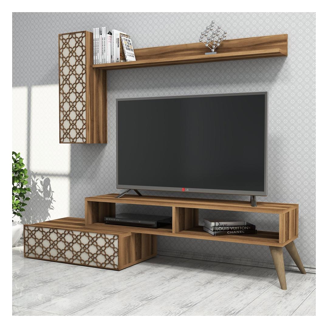 Transformeeri oma eluruum meie moodsa televiisorigaUuendage oma elutuba meie uimastava teleriga, mis ühendab endas kaasaegse disaini ja funktsionaalsuse. See 100% melamiiniga kaetud puitlaastplaadist valmistatud televiisor on valmistatud kestma ja vastu pidama igapäevasele kulumisele. Tõstke oma stiili elegantsi juurdeElegantne pähklipuu ja kreemi värvikombinatsiooniga telerikapp lisab elegantsi igasse ruumi. 4 mm cnc reljeefsed detailid lisavad sügavust ja tekstuuri, muutes selle teie kodus tõeliseks väljapaistvaks esemeks.Rikkalik panipaik oma meelelahutusvahendite jaoksMeie televiisor pakub arvukate riiulite ja mahuka kapi abil piisavalt ruumi kõigile teie meelelahutusvahenditele. Alates mängukonsoolidest kuni dvd-kollektsioonideni on kõigel oma koht, hoides teie elutoa segadusteta ja korrastatuna. Versatiivne ja funktsionaalne disainMeie telerikapp ei ole mitte ainult stiilne, vaid ka väga funktsionaalne. Plastist jalad tagavad stabiilsuse ja toe, samas kui võimalus kinnitada see seinale tagab ohutuse ja vastupidavuse. Tehnilised üksikasjad:Materjal: materjal: 100% melamiiniga kaetud puitlaastplaatPaksus: 18 mm4 mm CNC reljeefsed detailidPlastist jalad stabiilsuse tagamiseksTeleri suurus: 8 cm, sügavus: 37. 2 cm.Kirstu suurus: Laius: 70 cm, sügavus: 37. 2 cmSeina riiuli suurus: Laius: 120 cm, kõrgus: 11. 8 cm, sügavus: 16. 1 cm.Kapi suurus: Laius: 20 cm, kõrgus: 70 cm, sügavus: 22 cmVärv: Pähklipuu ja kreemikasKontseptsioon: Modern - uudsus, Ameerika traditsiooniline, lill. Värv: Walnut Cream