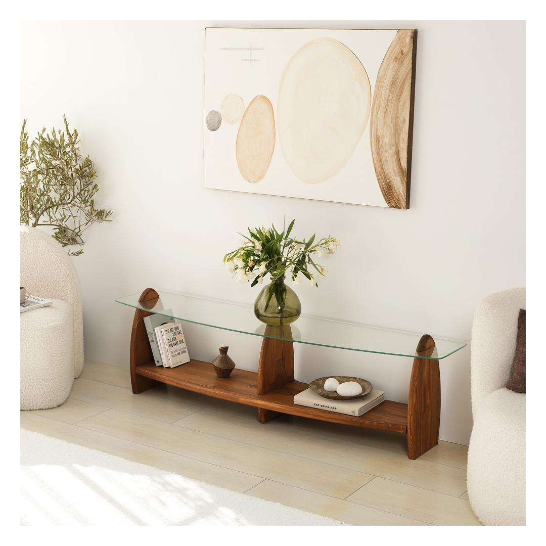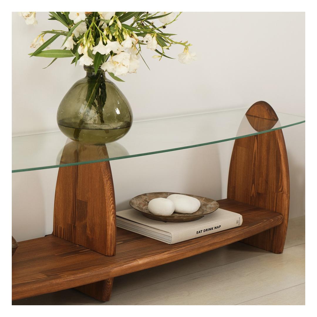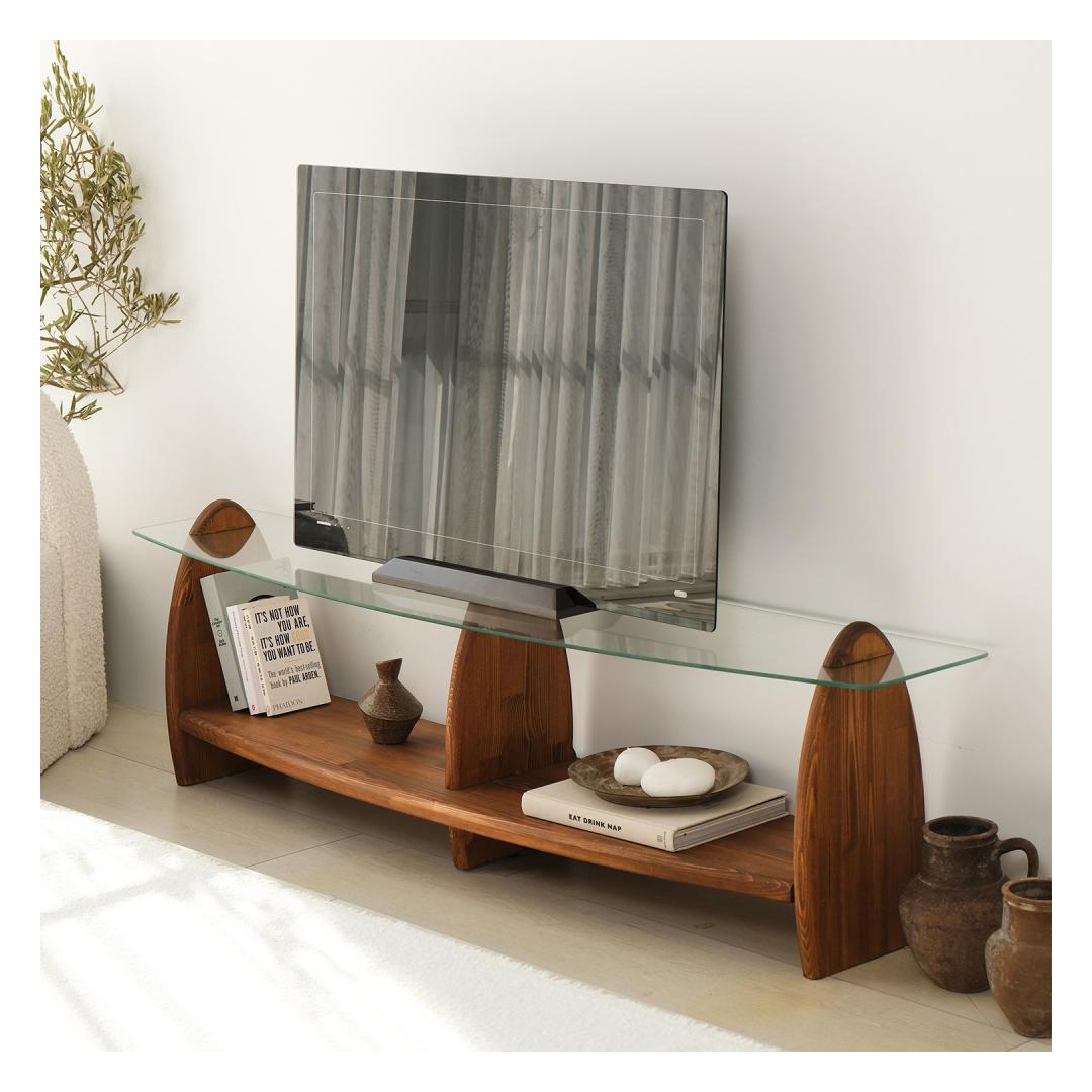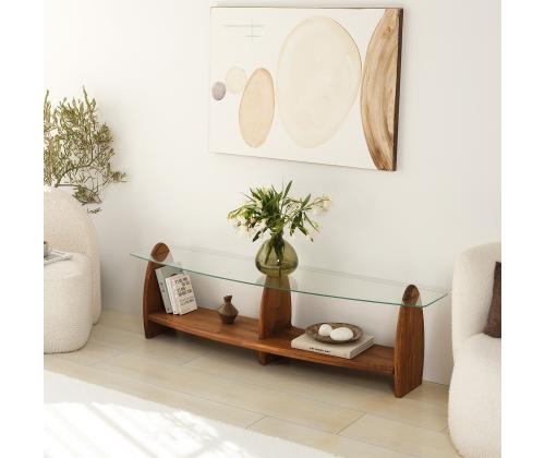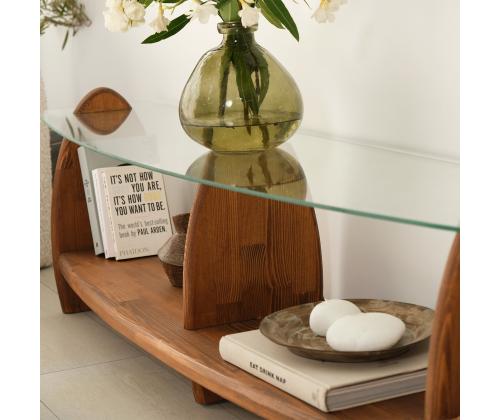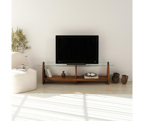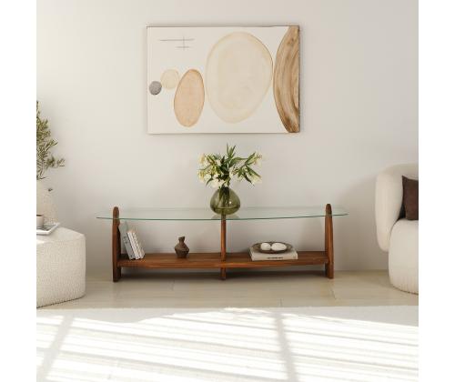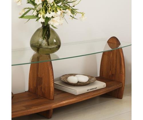 Muuda oma elutuba modernseks ja elegantseks ruumiks meie hämmastava telerialuse abil. Valmistatud 100% karastatud klaasist ja massiivsest männipuidust raamist, kiirgab see telerialus rafineeritust ja vastupidavust. Kastani ja läbipaistva värvi kombinatsioon lisab igasse ruumi soojust ja kaasaegset stiili.Paranda oma eluruumiLisa oma koju luksuse puudutus selle stiilse ja modernse telerialusega. 100% karastatud klaasist riiulid pakuvad tugevat ja ohutut platvormi sinu teleri ja meedia seadmete jaoks, samas kui männipuidust raam lisab sinu eluruumi looduslikku ilu. Oma modernse disaini ja mitmekesise värvigammaga on see telerialus ideaalne täiendus igasse koju.Tõsta oma meelelahutuskogemustOlgu sa siis vaatamas oma lemmikfilmi või korraldamas filmiõhtut sõpradega, see telerialus tõstab sinu meelelahutuskogemust. Avatud disain võimaldab piisavalt hoiuruumi kõigi sinu meedia seadmete jaoks, samas kui stiilne ja modernne välimus jätab mulje sinu külalistele ning muudab sinu elutoa kõigi kadeduseks.Tehnilised andmed:Materjal: 100% karastatud klaasist riiulid, 100% massiivne männipuidust raamMõõdud: Laius 160 cm, Kõrgus 45 cm, Sügavus 35 cmVärv: Kastan ja LäbipaistevKandmisvõime: 100 naelaKogumine vajalik: Jah, juhised on kaasas Värv: Chesnut Transparent