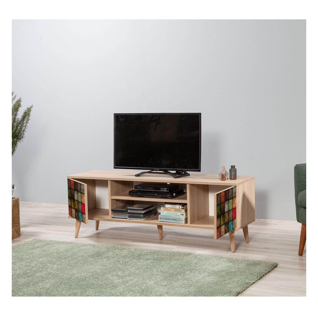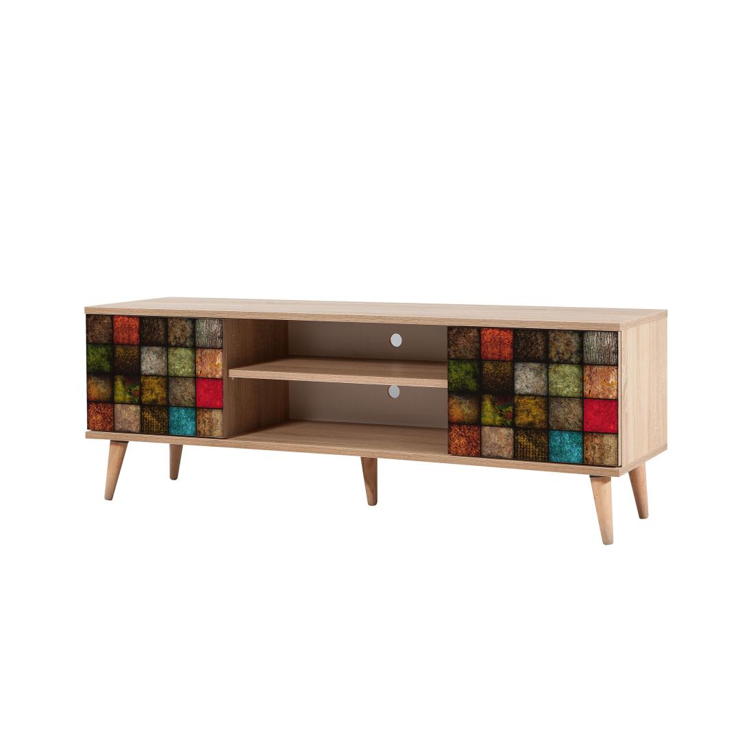 Transformeeri oma elutuba uimastava televiisoripuldigaUuendage oma elutuba meie suurepärase teleripuldiga, mis on loodud lisama teie koju elegantsust ja elegantsust. See ülima hoole ja tähelepanelikkusega valmistatud teleripult on täiuslik segu stiilist ja funktsionaalsusest. Võrratu kvaliteet ja vastupidavusValmistatud 100% melamiiniga kaetud puitlaastplaadist, on see telerialus ehitatud kestma. 18 mm paksus tagab tugevuse ja stabiilsuse, samas kui sarvepuust jalad tagavad tugeva aluse. Metallist ja köiega käepidemetega stendist õhkub ainulaadset võlu, mis võlub teie külalisi.Täiendada oma sisekujundust silmatorkava disainigaSee televiisoripuldi on tõeline kunstiteos, mis on koos kubismi/sürrealismi, geomeetriliste mustrite ja lappidega. Selle sonoma tammepuust värv lisab igasse ruumi soojust ja elegantsust, muutes selle täiuslikuks täienduseks teie kodule. Rikkalik panipaik teie mugavuse tagamiseksTänu arvukatele riiulitele ja täiendavale keskmisele riiulile pakub see televiisoripult rohkelt hoiuruumi kõigile teie meediaseadmetele, dvd-dele ja muudele olulistele asjadele. Võite selle ka seina külge kinnitada, et suurendada stabiilsust ja turvalisust. Tehnilised üksikasjad:Materjal: materjal: 100% melamiiniga kaetud puitlaastplaatPaksus: 18 mmSarvepuu jalad stabiilsuse tagamiseksMetallist ja köiest käepidemed unikaalse puudutuse jaoksUV-kate parandab vastupidavustLaius: 140 cm, kõrgus: 50 cm, sügavus: 40 cmKeskmise riiuli suurus: Laius: 59 cm, kõrgus: 15 cmJala kõrgus: 15 cmVärv: Sonoma TammUuendage oma elutuba juba täna meie uimastava teleripuldi abil ja kogege täiuslikku segu stiilist, funktsionaalsusest ja vastupidavusest. Muutke oma ruum elegantsi ja rafineerituse paradiisiks. Värv: Sonoma Oak