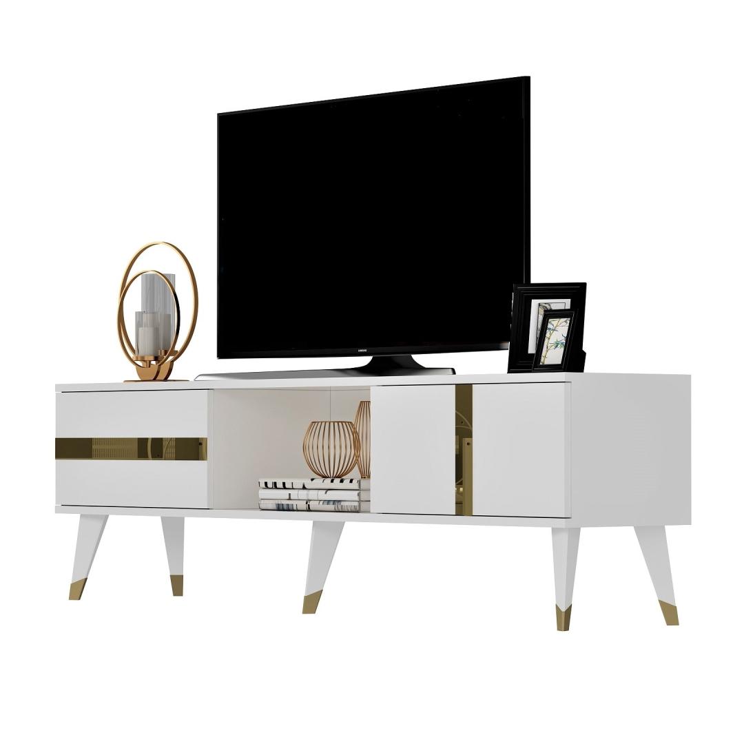 TV-pöytä Vania - Valkoinen, Kulta
