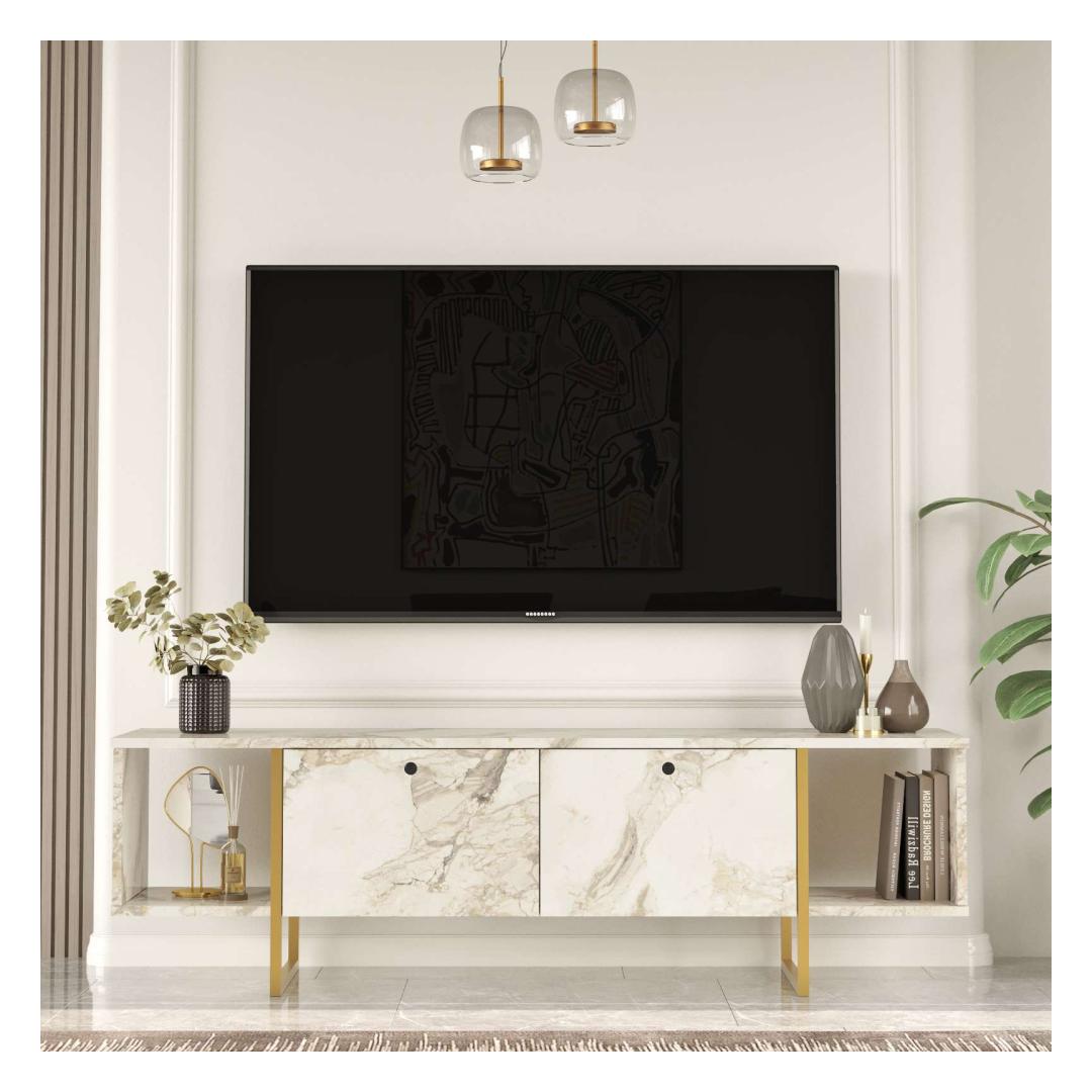 Featuring metal legs in a striking white and gold color combination, this TV Stand exudes opulence and luxury. The contrasting colors create a captivating visual impact, making it a true centerpiece in any room. The white and gold color combination effortlessly complements any existing decor, adding a touch of glamour to your space.