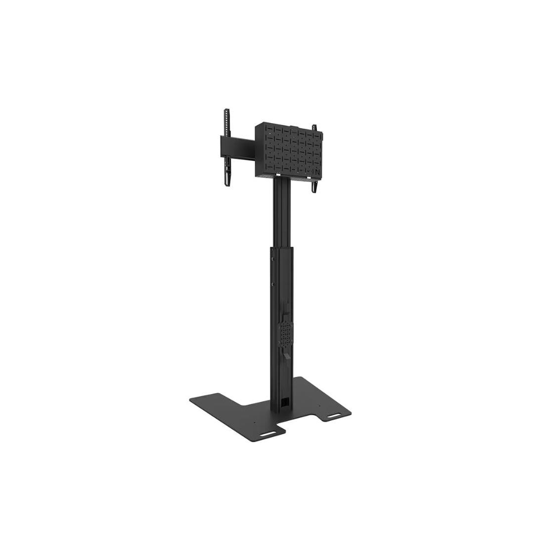 Neomounts FL45S-825BL1 MOVE Up on lattiateline jopa 75" litteille näytöille, joiden enimmäispainokapasiteetti on 70 kg. Näyttö voidaan kiinnittää lukitsemalla kiinnikkeet riippulukolla (ei sisälly toimitukseen). Lattiatelineen korkeus on säädettävissä käsin (104-157 cm), samoin kuin kannattimen pää. Lukittava, tuuletettu laitteistokotelo, jossa on kaapeliaukko, on mukana ja valinnainen asennusta varten (sekä pysty- että vaaka-asennossa). MOVE Up -lattiatelineessä on älykäs sisäinen kaapelinhallintajärjestelmä, jossa on erilaisia sisään- ja ulostuloaukkoja joustavaa käyttöä varten (yläpuolella, keskellä, jossa mediasoitin on sijoitettu, ja alareunassa), ja se kätkee ja reitittää kaapelit lattiatelineestä näytölle. FL45S-825BL1:ssä on massiiviteräksinen lattialevy, jossa on kiinnitysreiät, joiden avulla jalusta voidaan lisävarusteena pultata lattiaan lisäturvallisuuden takaamiseksi. Lattialevyssä on 2 kahvaa turvallista siirtämistä varten. Lisävarusteena on saatavana AFLS-825BL1- ja AV1-825BL-videopalkki- ja multimediasarjat, joiden avulla vaunuun voidaan asentaa erillinen kamerahylly ja multimedialaitehylly. Pakkauksiin sisältyy sovitin Logitech Rally Bar (Mini) tai Bose Professional VB-S/VB1 -laitteille. Yhteensopiva on myös yleispätevä AV2-500BL (VESA-kiinnitteinen) videopalkkisarja.
