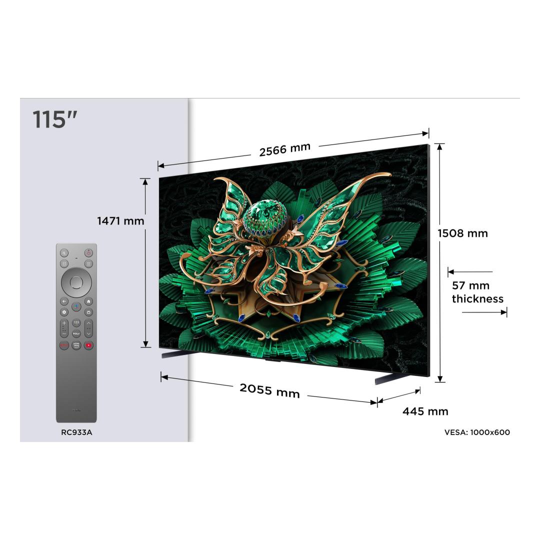 Televisio TCL 115 " 4K Ultra HD 3840 x 2160 pikseliä Flat 16:9 QD-Mini LED 115C7K 4K Ultra HD 3840 x 2160 pikseliä 16:9 QD-Mini LED 115C7K