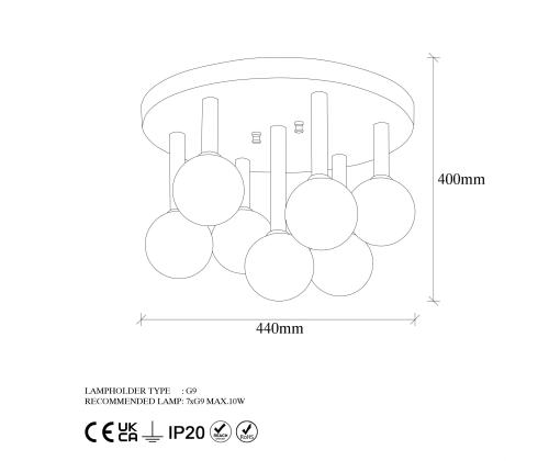 With a size of 44 x 44 x 40 cm and a cap diameter of 10 cm, this chandelier is the perfect size for medium to large rooms. The 7 x G9 socket type allows for a maximum of 8W bulbs (not included), providing ample lighting for any occasion. The IP20 rating ensures durability and safety, while the 220-240V voltage ensures compatibility with most electrical systems. Don't miss out on the opportunity to transform your space with our Metal Body Chandelier. Order yours today!