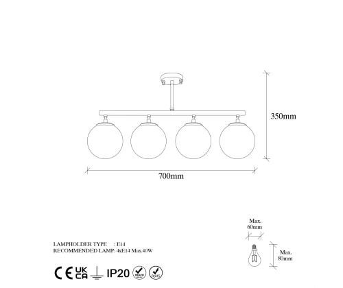 - Socket Type: 4 x E14 Max 40 W (bulb not included)