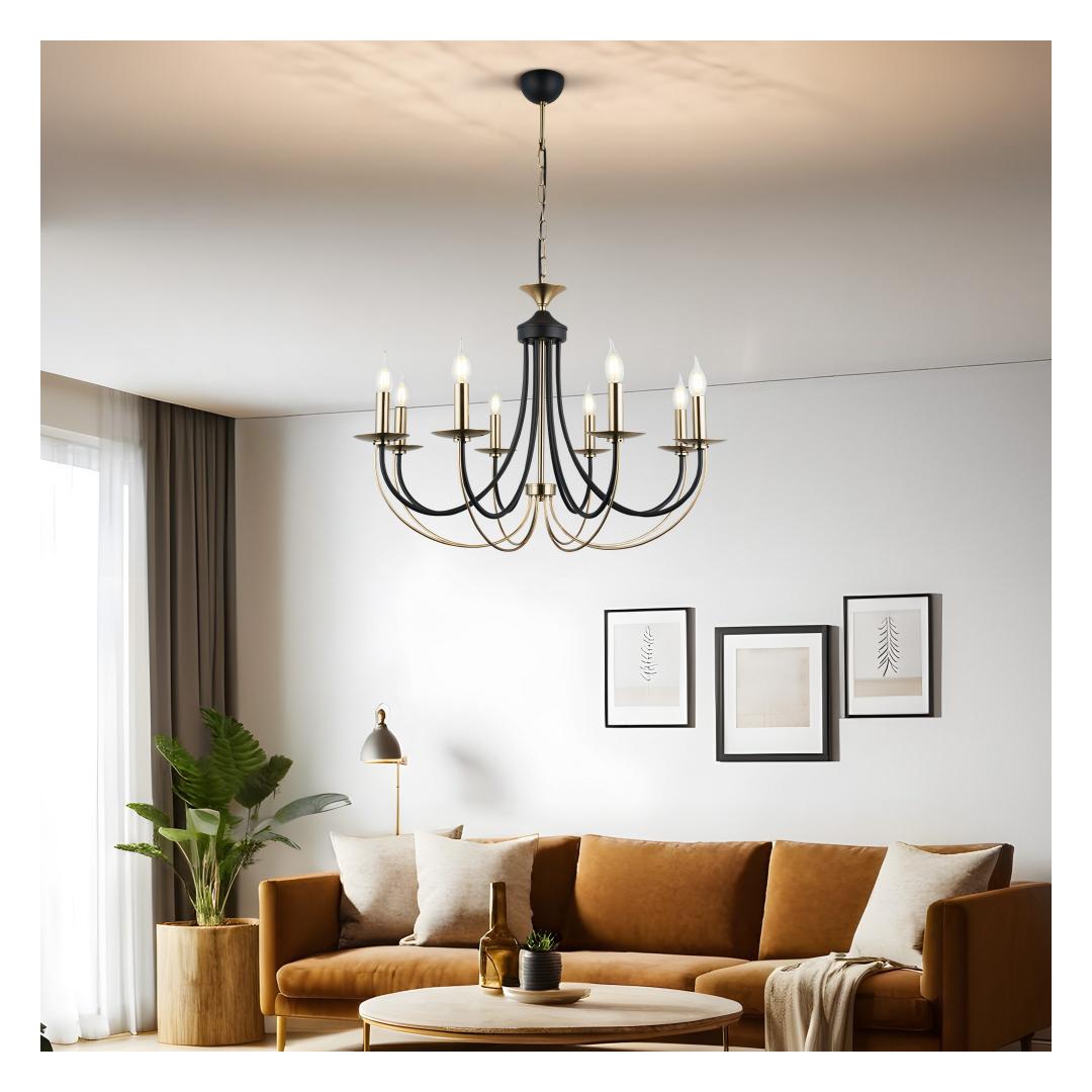 Muunna asuintilasi upealla metallikruunullamme. Tämä hieno kappale lisää eleganssia ja hienostuneisuutta mihin tahansa tilaan ja luo lämpimän ja kutsuvan ilmapiirin, jota sinä ja vieraasi rakastatte. Monimutkainen metallirunko ja antiikkilakattu viimeistely tekevät tästä kattokruunusta todellisen taideteoksen, joka on varmasti kotisi sisustuksen keskipiste. nosta kotisi sisustusta Tee statement tällä kauniilla kattokruunulla, joka huokuu ylellisyyttä ja tyyliä. Riippumatta siitä, ripustatko sen ruokasaliin, olohuoneeseen tai makuuhuoneeseen, tämä teos kohottaa välittömästi minkä tahansa huoneen ilmettä. Metallinen korkki ja pohjalevy lisäävät modernia ilmettä, kun taas klassinen muotoilu takaa, että tämä kattokruunu ei koskaan mene pois muodista. Luo lämmin ja kutsuva tunnelma 8 E14-pistorasian avulla, voit räätälöidä valaistuksen tarpeittesi mukaan ja luoda täydellisen tunnelman mihin tahansa tilaisuuteen. Piditpä sitten pehmeästä, tunnelmallisesta valaistuksesta tai kirkkaasta, keskittyneestä valosta, tämä kattokruunu kattaa kaiken. Lisää vain suosikkilamput ja katso, miten huoneesi muuttuu viihtyisäksi. Tekniset tiedot: metallirunko antiikkilakalla viimeistellyllä pohjalevyllä koko: 10 x 10 x 5 cmkorkeus: 80 - 132 cpistoketyyppi: 8 x E14 max. 40 Wlamput eivät sisälly220-240 VIP-koodi: IP20Väri: antiikkilakkaVäri Väri: Antiikkilakka