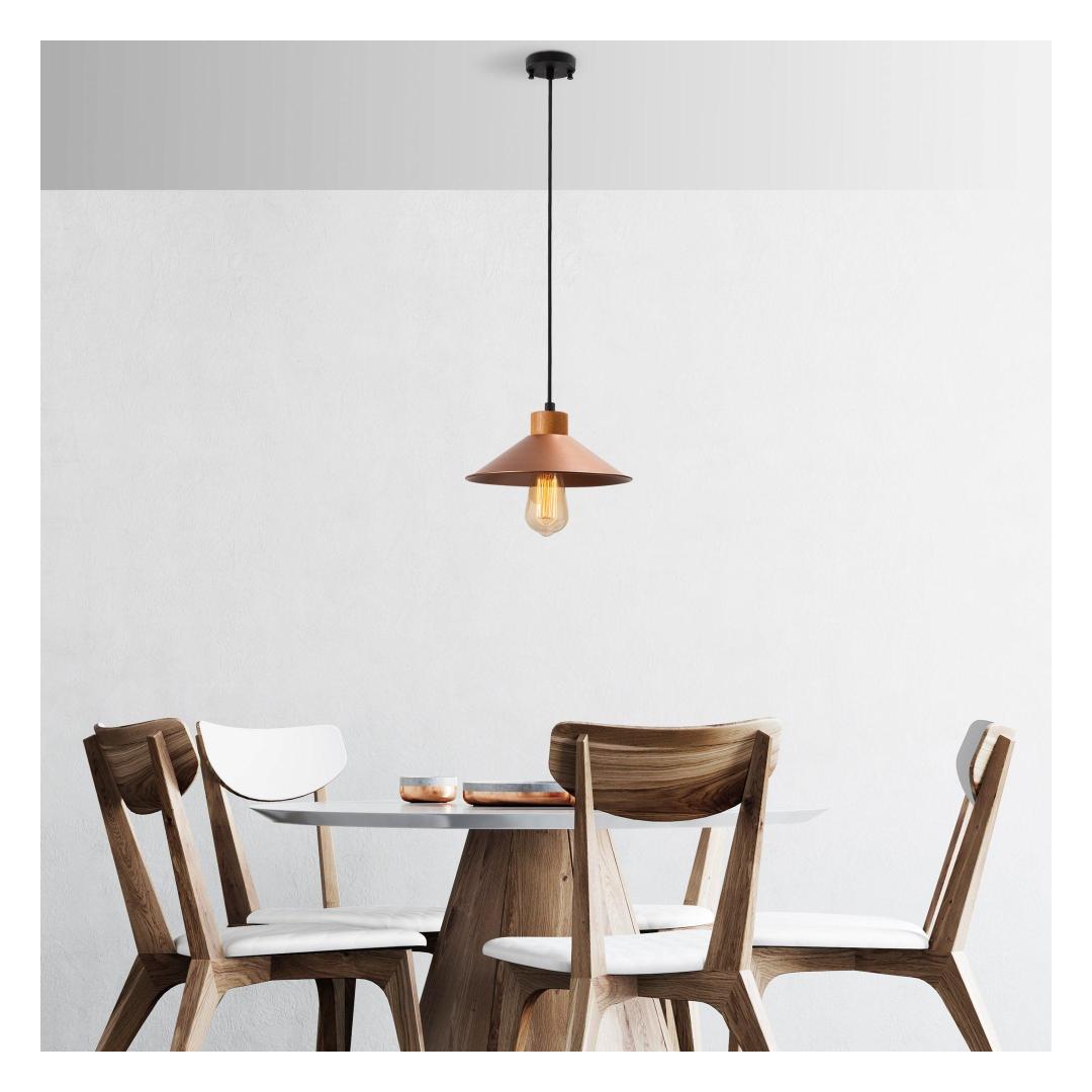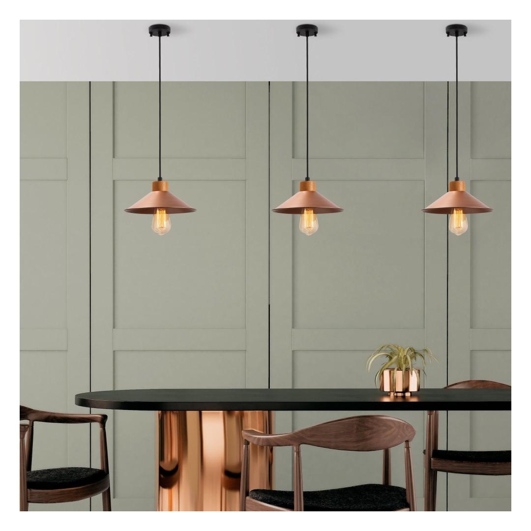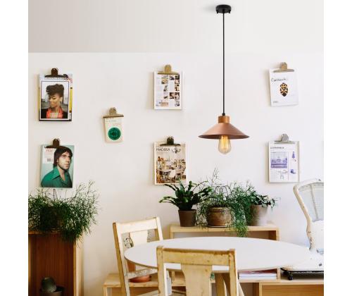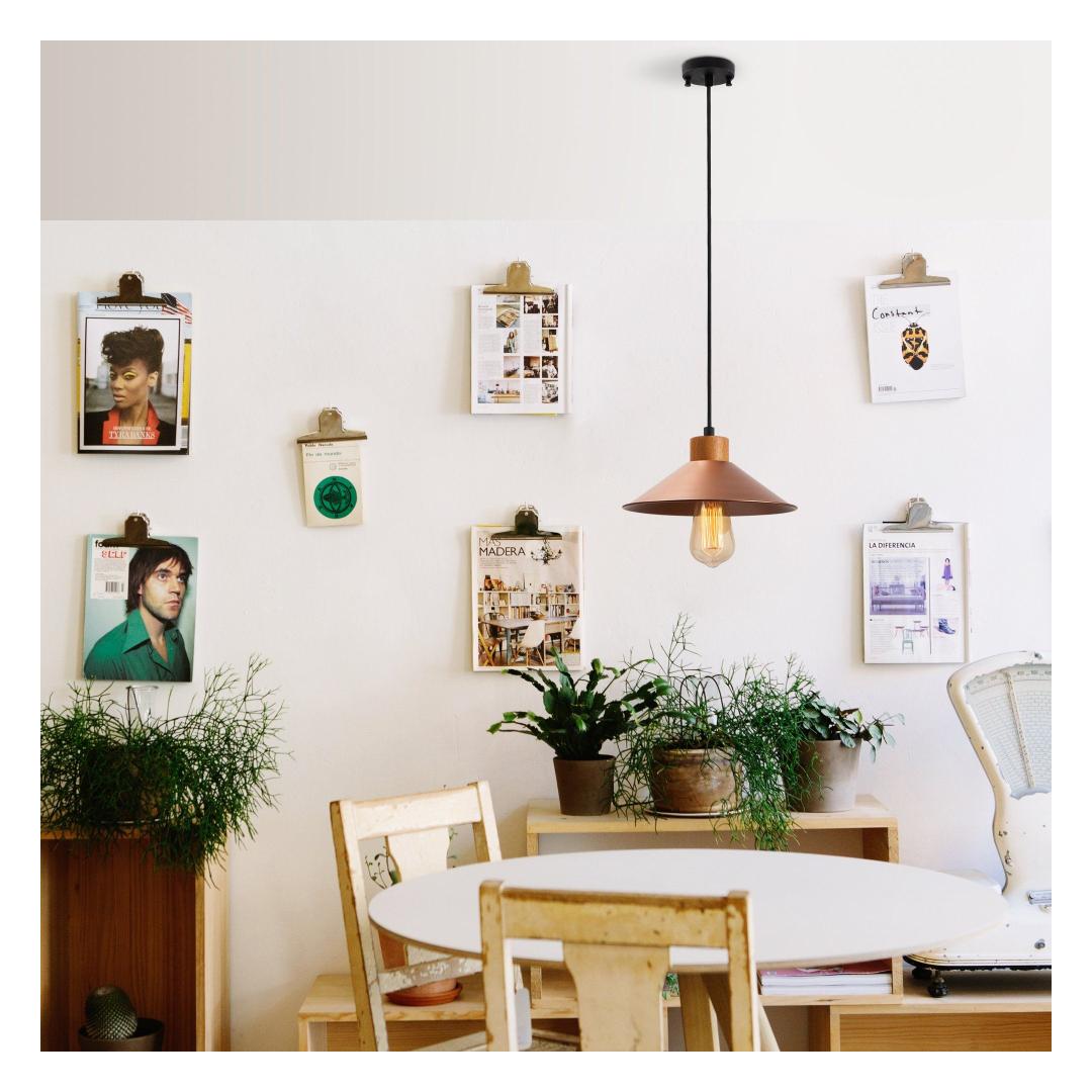 The combination of the metal body and wooden base gives this chandelier a unique and stylish look that will complement any decor. The copper color adds a touch of luxury and glamour, making it the perfect statement piece for your home.