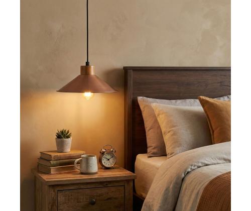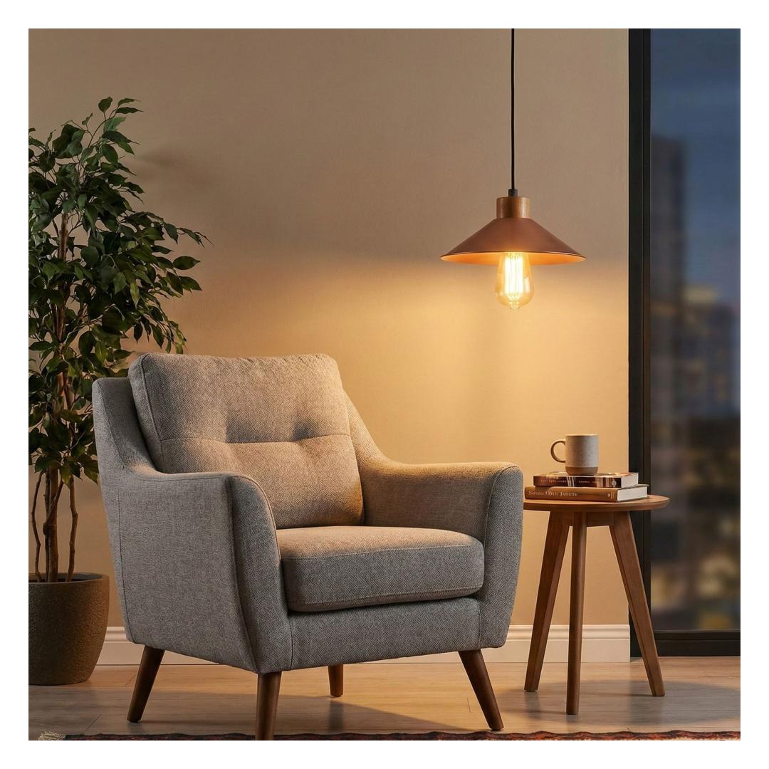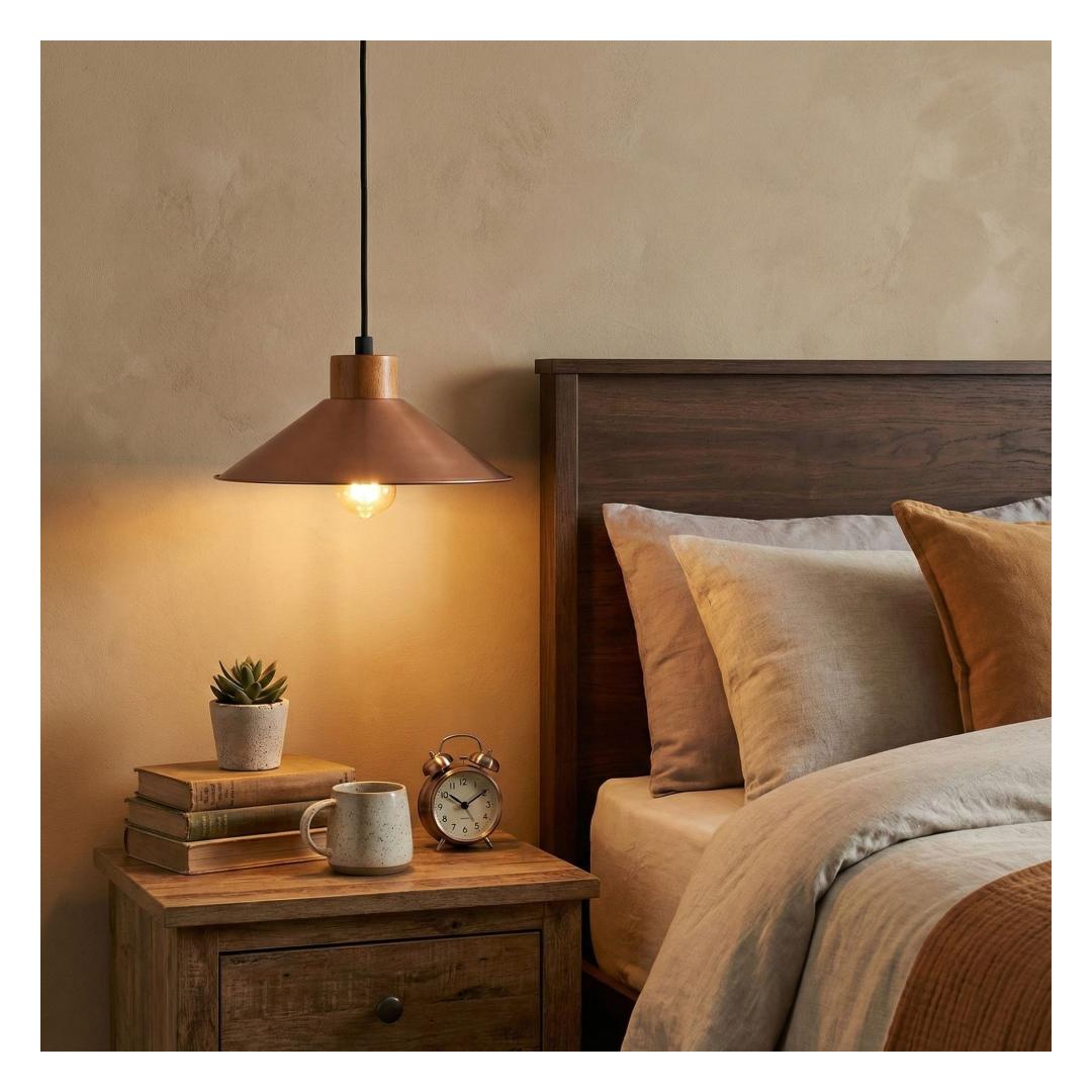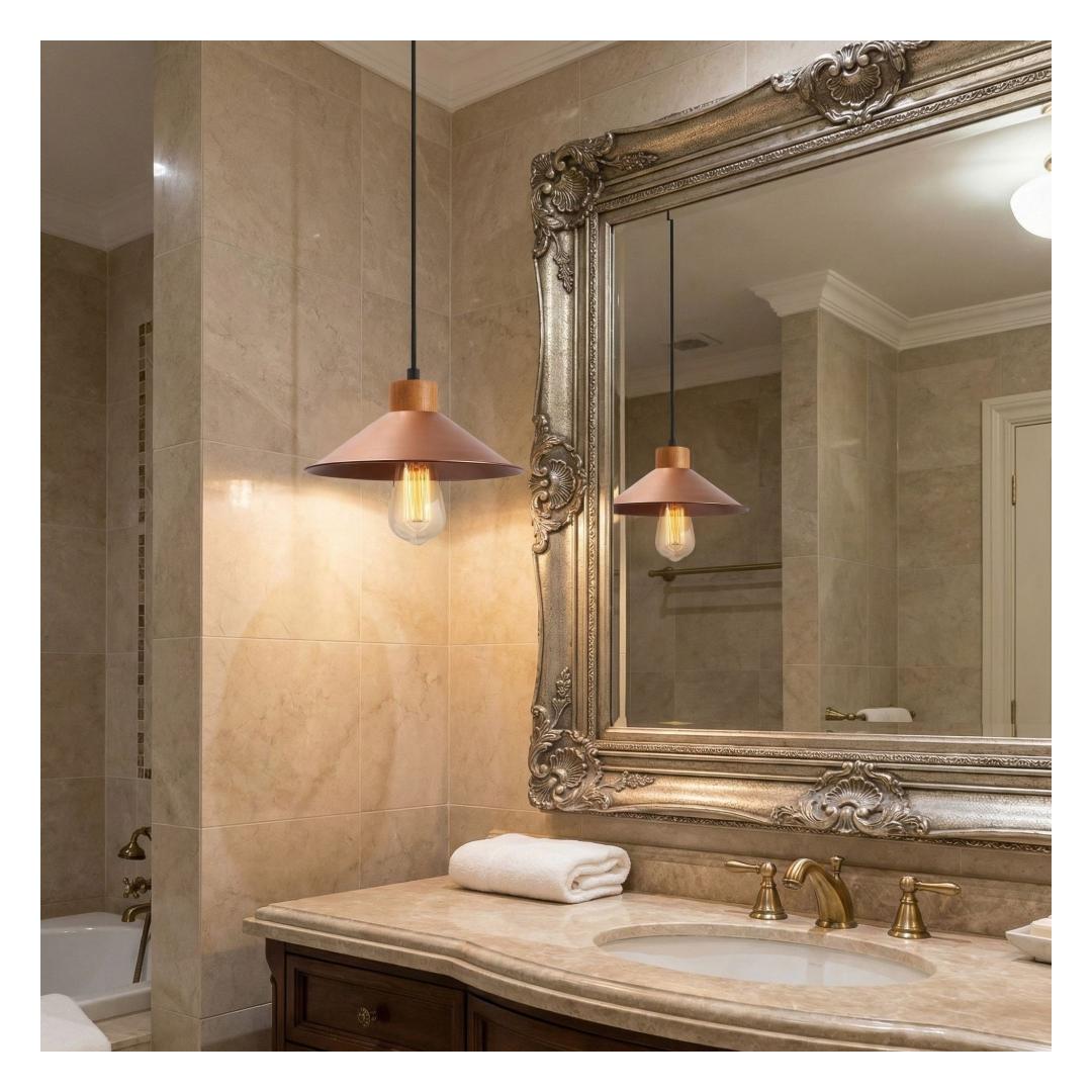 The combination of the metal body and wooden base gives this chandelier a unique and stylish look that will complement any decor. The copper color adds a touch of luxury and glamour, making it the perfect statement piece for your home.