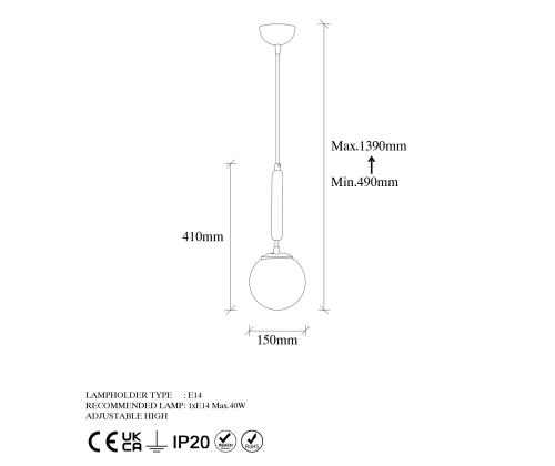 - Max. Bulb Size: Diameter: 6 cm, Height: 9 cm