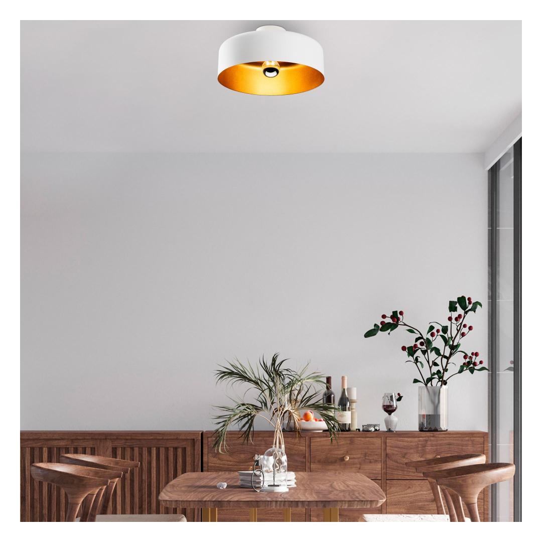- Metal body with a white finish