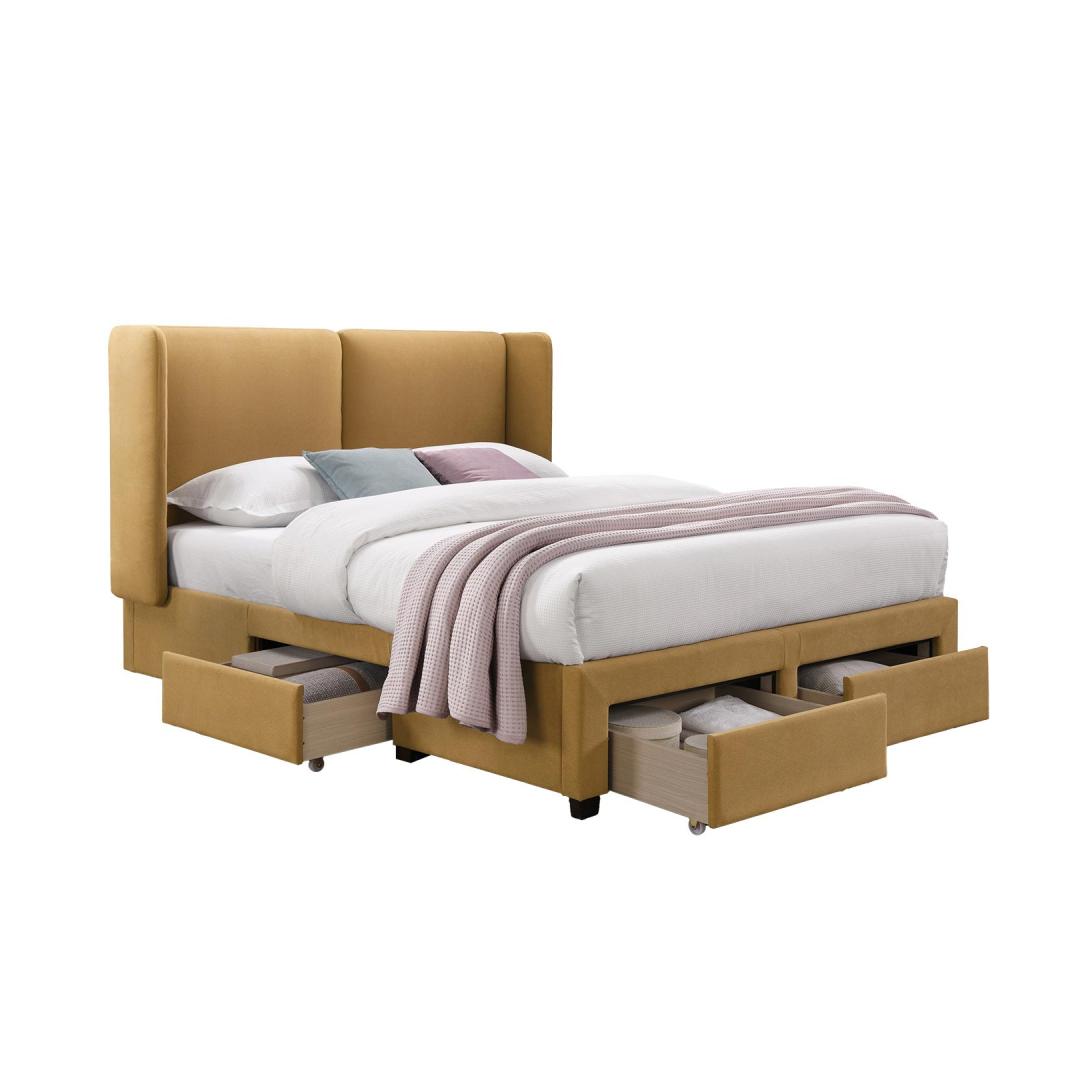Sänky SUGI patjalla HARMONY DUO SEASON 160x200cm, keltainen. Sängyn runko on valmistettu puusta ja kalustelevystä ja päällystetty polyesterikankaalla. Verhoillun korkean päätyosan ansiosta voit lukea tai katsella televisiota mukavasti. Sängyn alarungon sisällä on neljä pyörillä liikkuvaa laatikkoa. Setti sisältää sängynalusosan ja HARMONY DUO SEASON -patjan. Sängyn kokonaismitat ovat 175x218xH114cm. HARMONY DUO SEASON -jousipatja 160x200xH29cm.