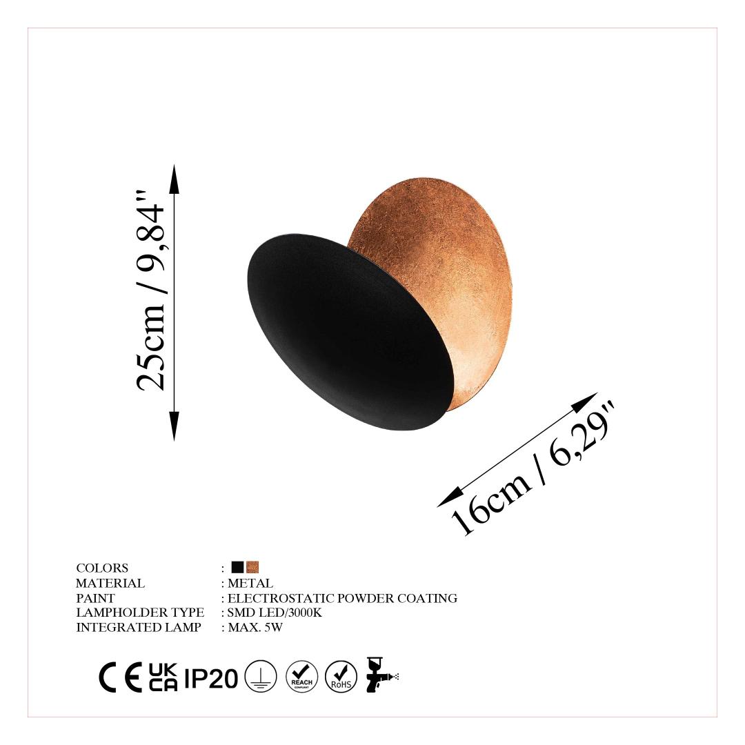 Valaise tilasi tyylikkäästi ja tyylikkäästi Esittelemällä hieno seinävalaisimemme, joka on täydellinen yhdistelmä hienostuneisuutta ja toiminnallisuutta. Tämä valaisin on suunniteltu parantamaan minkä tahansa huoneen tunnelmaa, ja se tuo tilaan eleganssia. Tyylikkään metallirungon ja kiehtovan mustan ja kuparin väriyhdistelmän ansiosta siitä tulee varmasti kotisi keskipiste.Tarkkuus ja kestävyysMetallisella pohjalevyllä varustettu valaisin takaa vakauden ja kestävyyden, joten se on pitkäikäinen lisä sisustukseesi. Kompaktin kokonsa ansiosta (25 cm leveä, 25 cm korkea ja 16 cm syvä) se sopii mihin tahansa seinätilaan. Sen 25 cm:n halkaisija ja 2 cm:n korkeus takaavat valon laajan ja tasaisen jakautumisen, mikä luo lämpimän ja kutsuvan ilmapiirin. Tämä smd-led-lampuilla ja 5 watin led-kannalla varustettu seinävalaisin tarjoaa energiatehokasta valaistusta, joka kirkastaa huoneen ja säästää samalla sähkölaskuja. IP 20 -luokitus takaa suojan pölyltä ja pieniltä esineiltä, joten se soveltuu sisäkäyttöön. Tekniset tiedot:Metallirunko kiinteällä metallisella pohjalevylläLeveys: 25 cm, Korkeus: 25 cm, Syvyys: 16 cm.Korkin halkaisija: 25 cm, Korkin korkeus: 2 cmJalkalevyn halkaisija: 10 cm, Jalkalevyn korkeus: 2 cmIP 20 -luokitus pölyltä suojaamiseksiLampun pistorasian tyyppi: SMD-LEDPistorasian tyyppi: LED 5Saatavana näyttävässä mustan ja kuparin väriyhdistelmässäVäritä valaistuspelisi seinävalaisimellamme ja muuta tilasi tyylikkyyden ja viehätyksen paratiisiksi. Älä missaa tätä tilaisuutta lisätä ripauksen hienostuneisuutta kotiisi. Tilaa nyt ja koe tyylin ja toiminnallisuuden täydellinen yhdistelmä! Väri: musta kupari