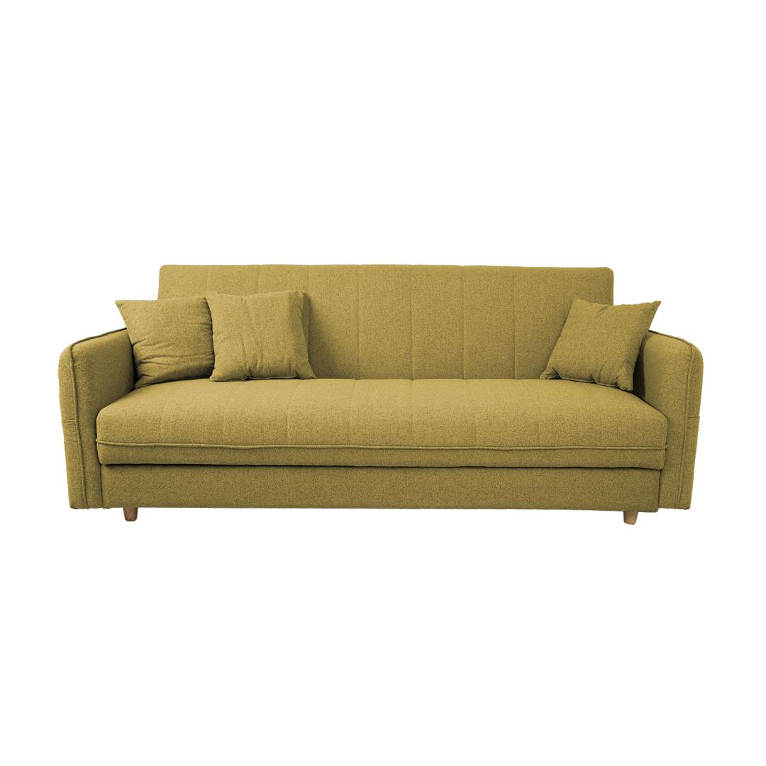 Sohvasänky VISBY, jossa pesuallas, keltainen. Päällystemateriaali: 100 % polyesterikangas. Runko: puu, vaneri. Verhoilu: polyuretaanivaahto. Sohvassa on yksinkertainen click-clack-mekanismi. Istuimen alla on säilytystila. Sohvan kokonaismitat ovat 200x88xH93cm. Vuodesohvan mitat ovat 180x110xH46cm avattuna. Sohvassa on vaaleat puujalat. Sohvasänky VISBY, jossa pesuallas, keltainen. Päällystemateriaali: 100 % polyesterikangas. Runko: puu, vaneri. Verhoilu: polyuretaanivaahto. Sohvassa on yksinkertainen click-clack-mekanismi. Istuimen alla on säilytystila. Sohvan kokonaismitat ovat 200x88xH93cm. Vuodesohvan mitat ovat 180x110xH46cm avattuna. Sohvassa on vaaleat puujalat.