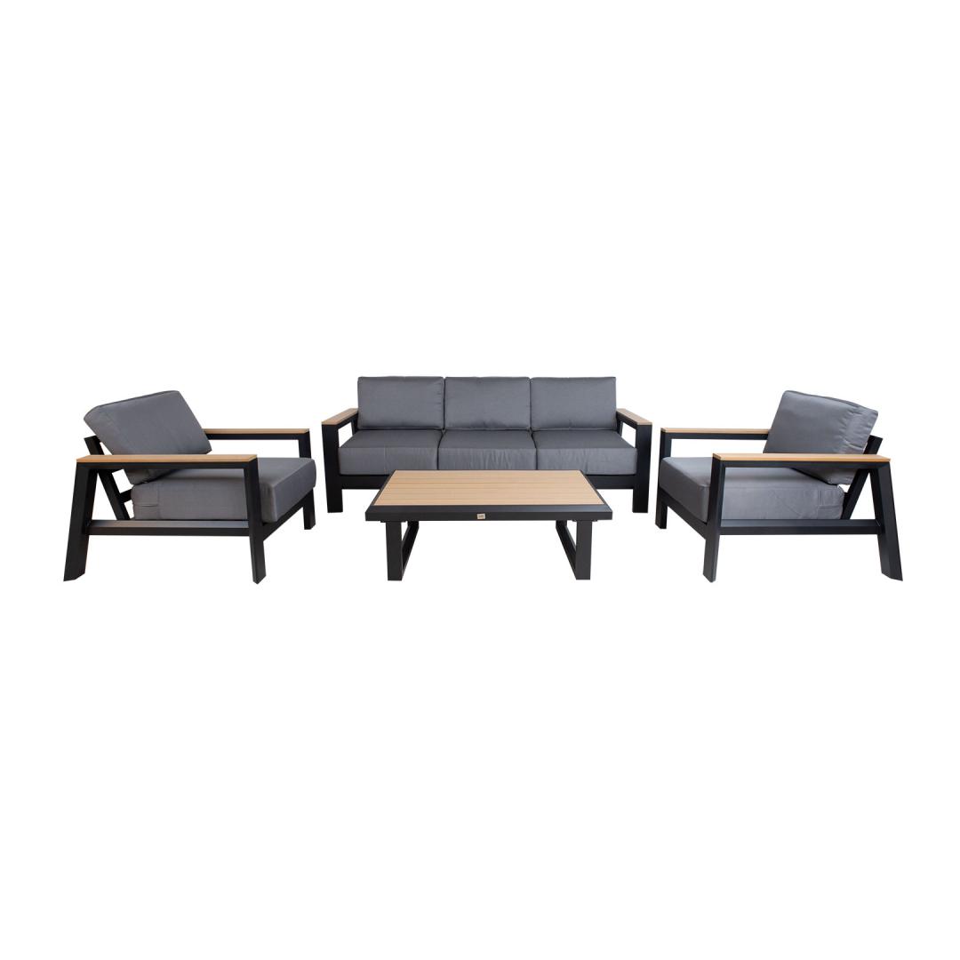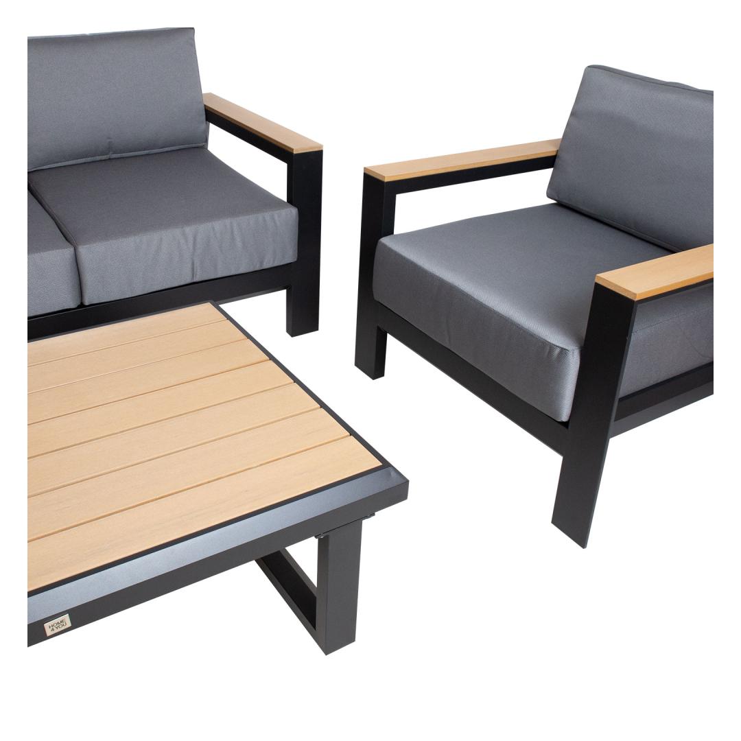 Puutarhakalusteet FELNO pöytä, sohva ja 2 nojatuolia, musta