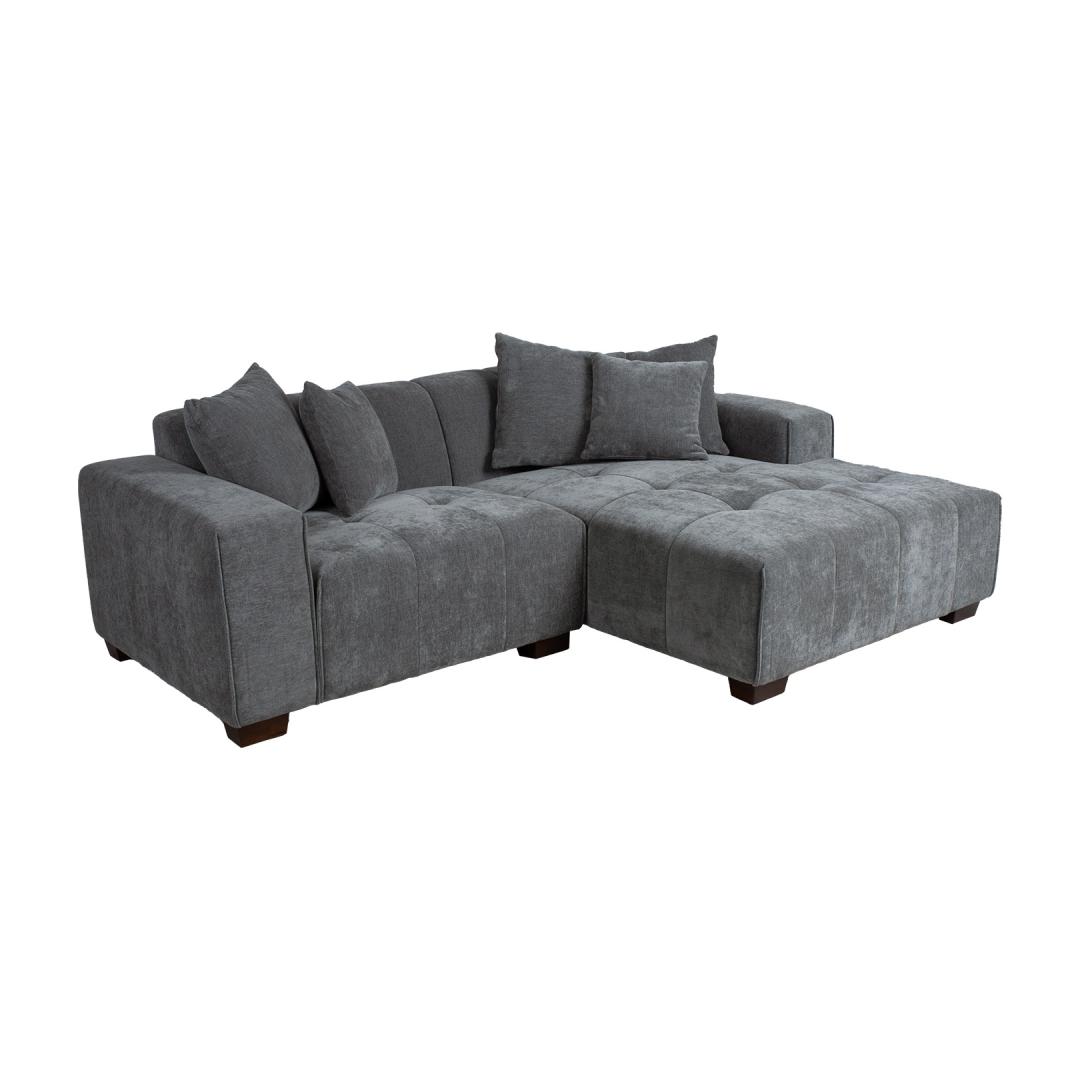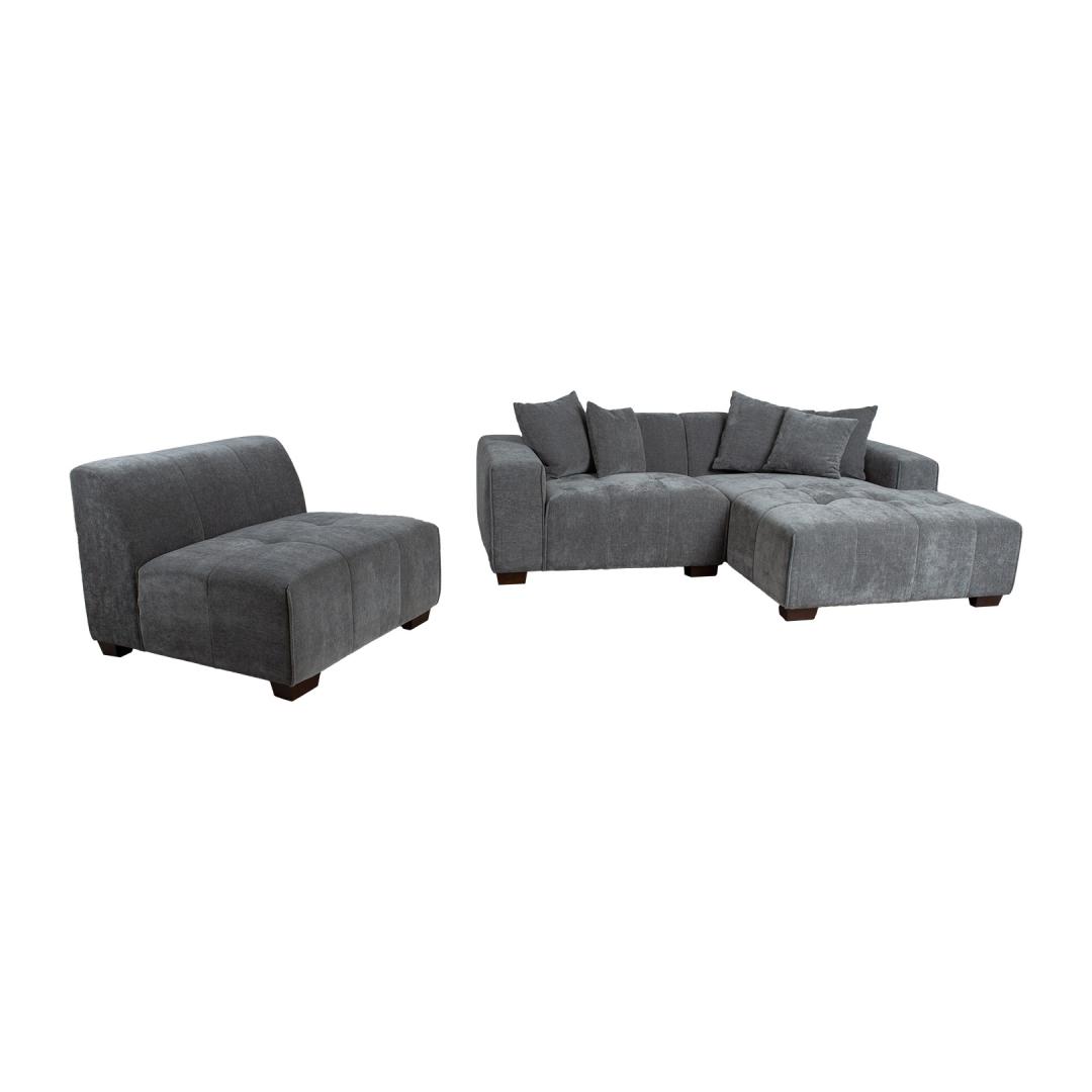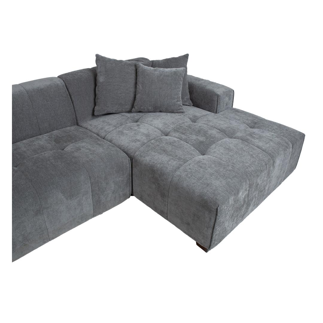 Kulmasohva DAHLIA oikea kulma, harmaa. Trendikäs kulmasohva minimalistisella tyylillä, joka sopii täydellisesti moderniin sisustukseen. Runko on valmistettu männystä. Verhoilu on valmistettu korkealaatuisesta polyuretaanivaahdosta. Istuinpohja saa tarvittavan tuen ja kimmoisuuden laadukkaista teräksisistä siksak-jousista. Sohva on kokonaan verhoiltu samettisen pehmeällä kankaalla. Päällystemateriaali: 79 % polyesteriä, 21 % viskoosia. Sohvan kokonaismitat ovat 322x96/162xH74cm. Istuimen leveys 270cm, istuimen syvyys 64cm, istuimen korkeus 45cm. Käsinojan korkeus maasta 62cm, käsinojan leveys 26cm. Sohvassa on tummat puujalat H7cm. Settiin kuuluu 3+2 sohvatyynyä, joiden mitat ovat 55x55cm ja 42x42cm. Nurgadiivan DAHLIA parem nurk, hall.