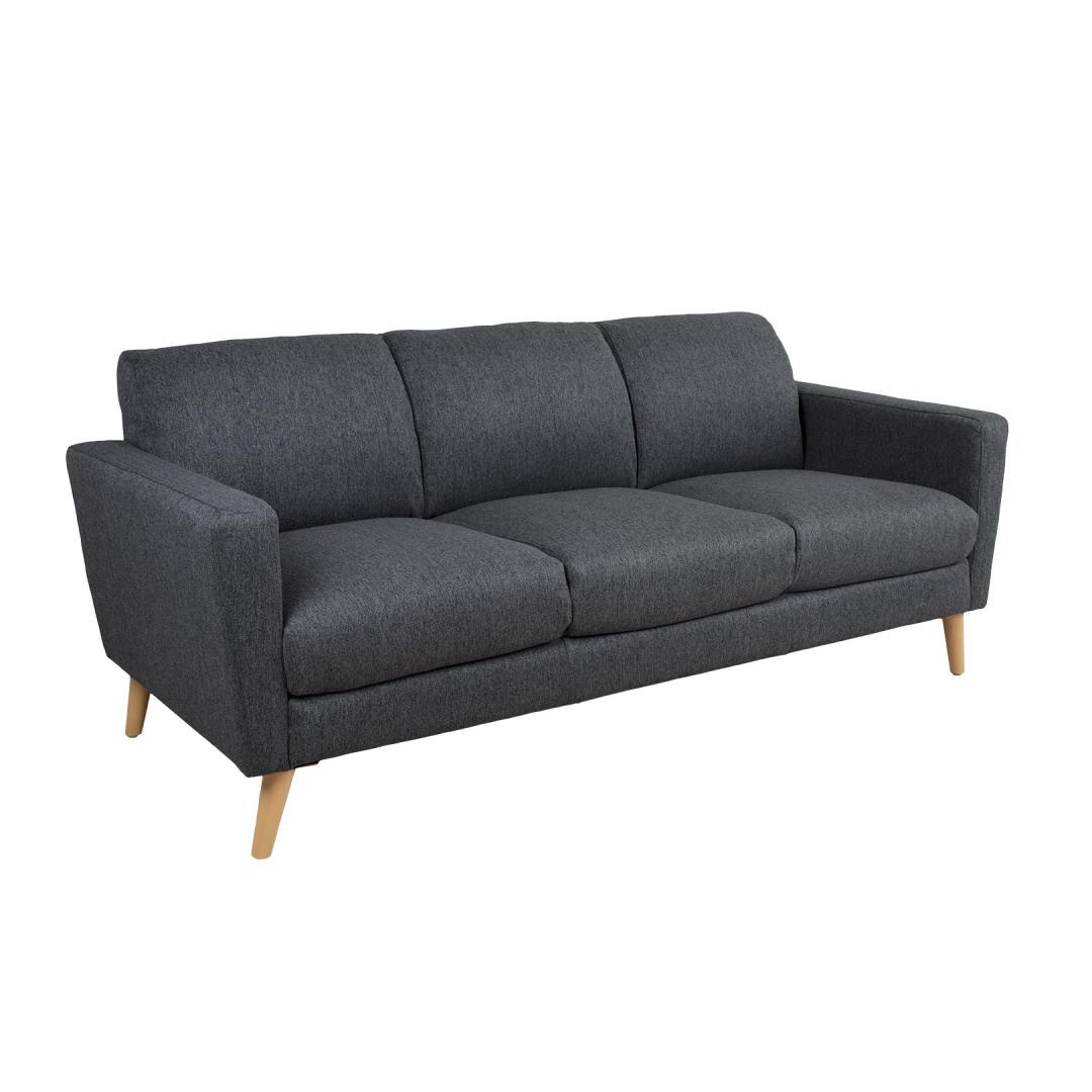 Sohva KAILI 3-istuttava, tummanharmaa. Sohvan runko on valmistettu puusta ja vanerista. Istuimen sisällä oleva taskujousilohko takaa erinomaisen istuinmukavuuden. Verhoilu on valmistettu polyuretaanivaahdosta (PU 25kg/m³) ja tuuheasta polyesterikuidusta. Sohva on kokonaan verhoiltu polyesterikankaalla. Sohvan kokonaismitat ovat 200x83xH84cm. Istuimen leveys 172cm, istuimen syvyys 56cm, istuimen korkeus 49cm. Käsinojan korkeus maasta 64cm, käsinojan leveys 13cm. Sohvassa on vaaleat puujalat H19cm. Diivan KAILI 3-kohaline, tumehall.