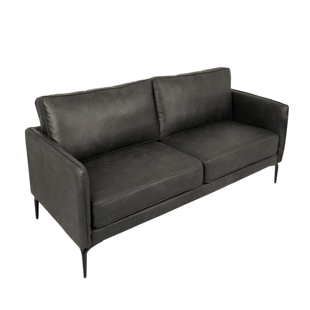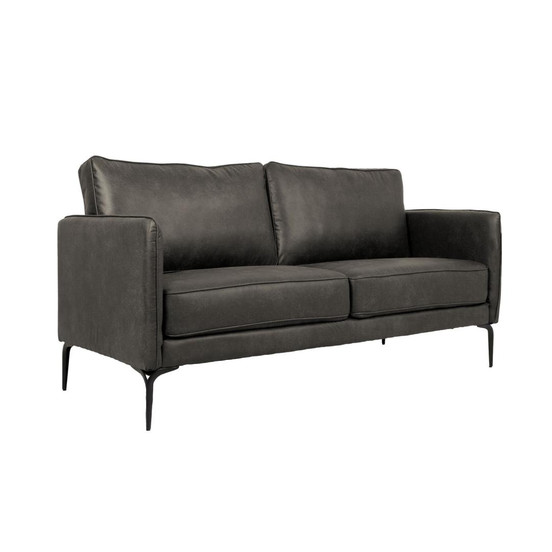 Sohva SOFIA 2-istuttava, tumma oliivi. SOFIA-verhoiltujen huonekalujen sarjassa yhdistyvät ajaton, tyylikäs muotoilu ja moderni tekniikka parhaalla mahdollisella tavalla. Runko on valmistettu sinkitystä teräksestä. Metallirunkoiset pehmustetut kalusteet ovat huomattavasti kestävämpiä ja kevyempiä kuin perinteisesti valmistetut puurunkoiset pehmustetut kalusteet. Sohvan metallirungon ulkosivut on päällystetty porolone-kerroksella. Istuinjalusta saa tarvittavan tuen ja kimmoisuuden laadukkailla 9G-siksak-jousilla, joiden vetolujuus on suuri. Kolmikerroksinen verhoilu takaa istuintyynyjen mukavuuden ja houkuttelevan muodon. Alin ja paksuin kerros on korkeatiheyksinen polyuretaanivaahtomuovi, jonka päällä on pehmeä porolone-kerros, joka on päällystetty polyesterikuitukerroksella. Löysät selkätyynyt on täytetty tilavalla polyesterikuidulla. Sohva on kokonaan verhoiltu keinonahkaa muistuttavalla polyesterikankaalla. Sohvan kokonaismitat ovat 175x83xK82cm. Istuimen leveys 155cm, istuimen syvyys 52cm, istuimen korkeus 44cm. Käsinojan korkeus maasta 63cm. Sohvassa on mustat metallijalat H18cm. Diivan SOFIA 2-kohaline, tume oliiv.