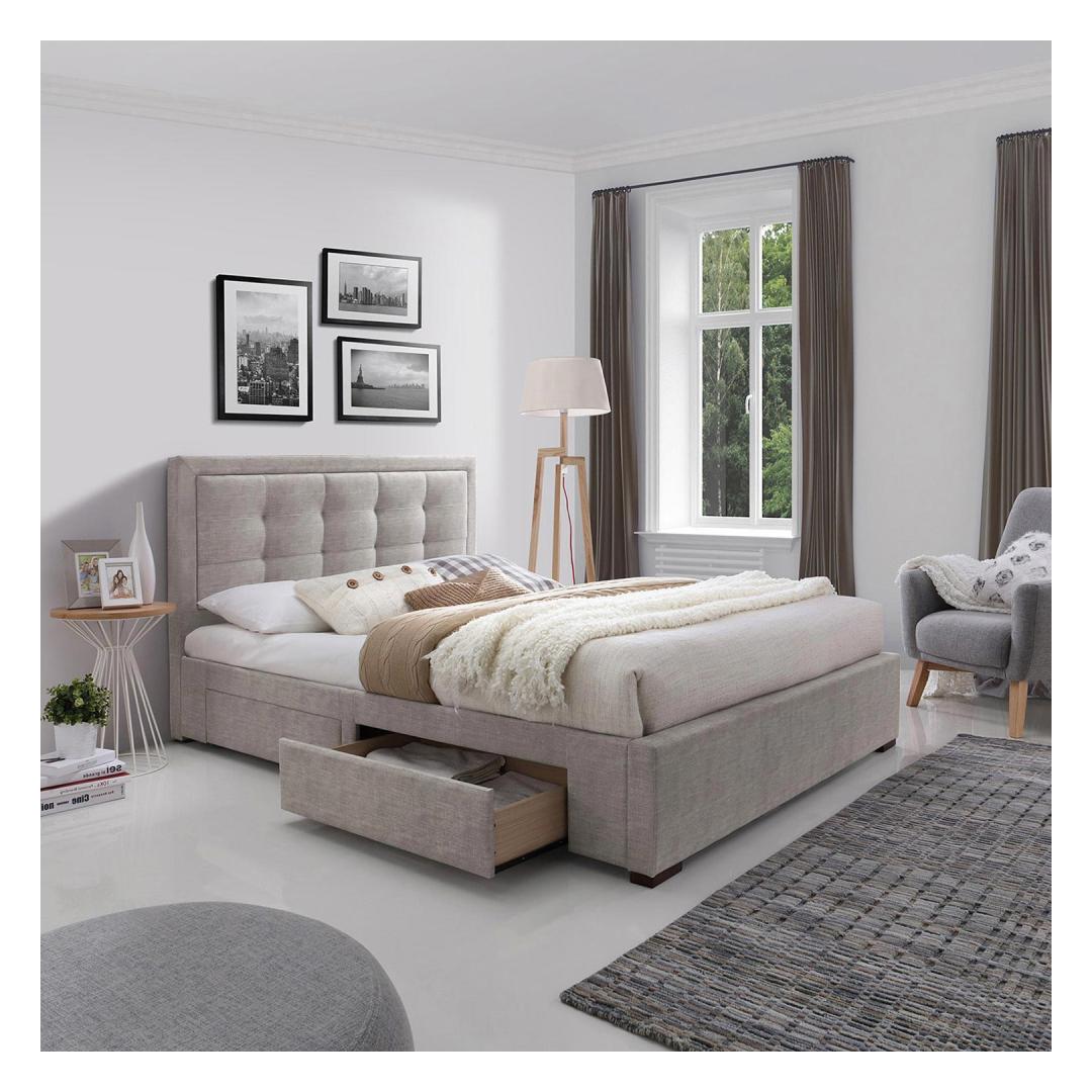 Sänky DUKE 160x200cm, patja HARMONY TOP, beige, 164,5x215xH110cm, MDF, puu, polyesterikangas