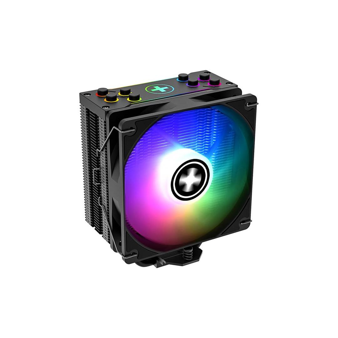 Performance A+ -sarjan uusi M704PRO.ARGB-prosessorijäähdytin tuo valoa kotelon sisälle. CPU-jäähdyttimen korostamiseksi RGB-valaistusjärjestelmien LED-valot ovat erikseen osoitettavissa, ja lisäksi koko muu osa on suunniteltu mustaksi. Yläkannessa on ARGB-valaistus. Sen 3PIN 5V D/P ARGB M/B -liitin on yhdistetty emolevyn vastaavaan liittimeen, joten tuulettimen värimaailmaa voidaan ohjata. Jos emolevyllä ei ole vastaavaa RGB M/B -liitintä, M704.ARGB tarjoaa mahdollisuuden hallita värimaailmaa minisäätimellä (joka saa virtansa virtalähteen S-ATA-liitännän kautta). Tämän muotoilun ja teknisten ominaisuuksiensa ansiosta M704PRO.ARGB-jäähdytin soveltuu erityisesti pelijärjestelmiin. Multi-socket-muotoilun ansiosta jäähdytintä voidaan käyttää kaikissa nykyisissä AMD:n ja Intelin pistorasioissa. Toimitukseen sisältyy - jäähdyttimen ja 120 mm:n PWM-tuulettimen lisäksi - kiinnitysmateriaali pistorasioille LGA1150/1151/1155/1156/1200/1700, LGA2066/2011 ja AM4 , kuvitetut asennusohjeet sekä tuubi lämpötahnaa.