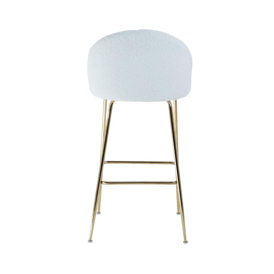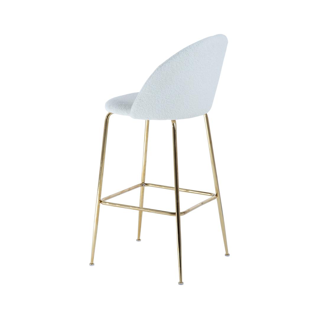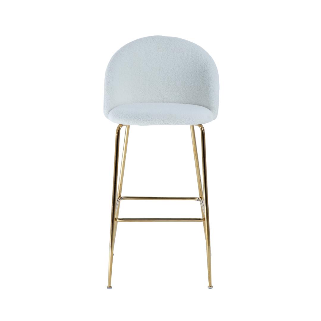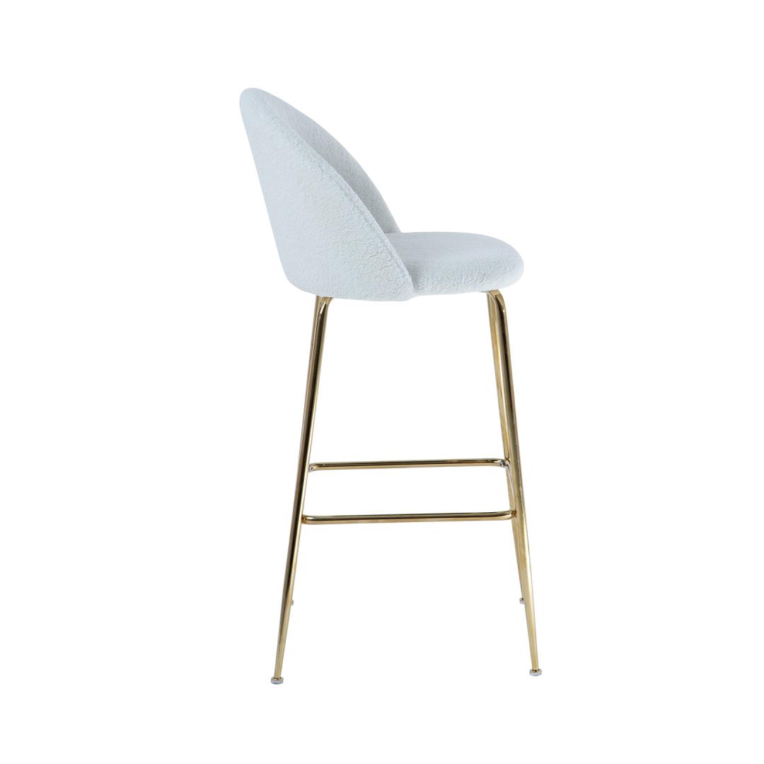 Baarijakkara BEETLE, valkoinen. Ylellisen näköinen, tyylikäs ja mukava BEETLE-tuoli piristää mitä tahansa huonetta ja luo lämpimän, kodikkaan tunnelman. Istuin ja selkänoja on verhoiltu ja päällystetty laadukkaalla, pehmeällä muhkealla kankaalla. Verhoilumateriaali: 100 % polyesteriä, 400 g/m². Metallijalat on viimeistelty kultaisella pulverimaalilla. Tuolin kokonaismitat ovat 52x54xK105cm, istuimen leveys 47cm, istuimen syvyys 41cm, istuimen korkeus 75cm. Selkänojan korkeus 33cm, jalkatuen korkeus 30cm. Painoraja 100kg.