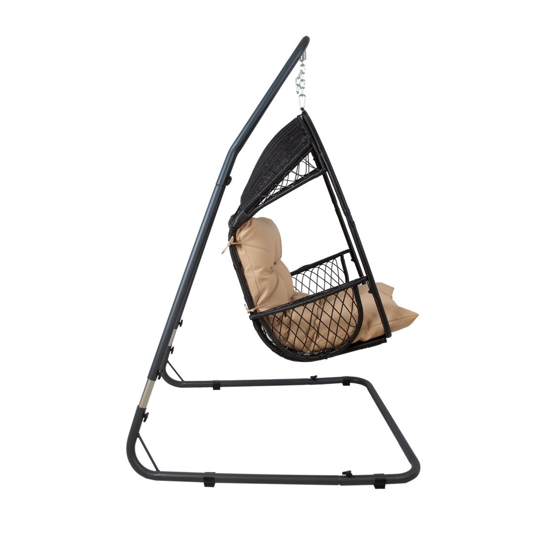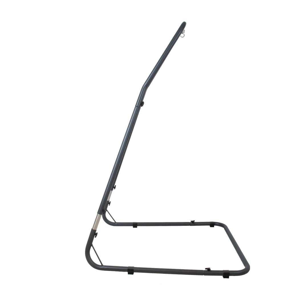 Riipputuolin jalusta 116x136xK195/230cm, tummanharmaa. Säädettävän korkuinen yleiskäyttöinen jalusta, joka sopii erityyppisiin riipputuoliin. Jalusta on valmistettu teräksestä ja viimeistelty tummanharmaalla pulverimaalilla. Sisältää koukkujousen riipputuolin ripustamista varten. Painoraja 120kg. Tuotteen käyttöiän pidentämiseksi suosittelemme sen purkamista kesäkauden lopussa ja säilyttämistä kuivassa, hyvin ilmastoidussa tilassa.