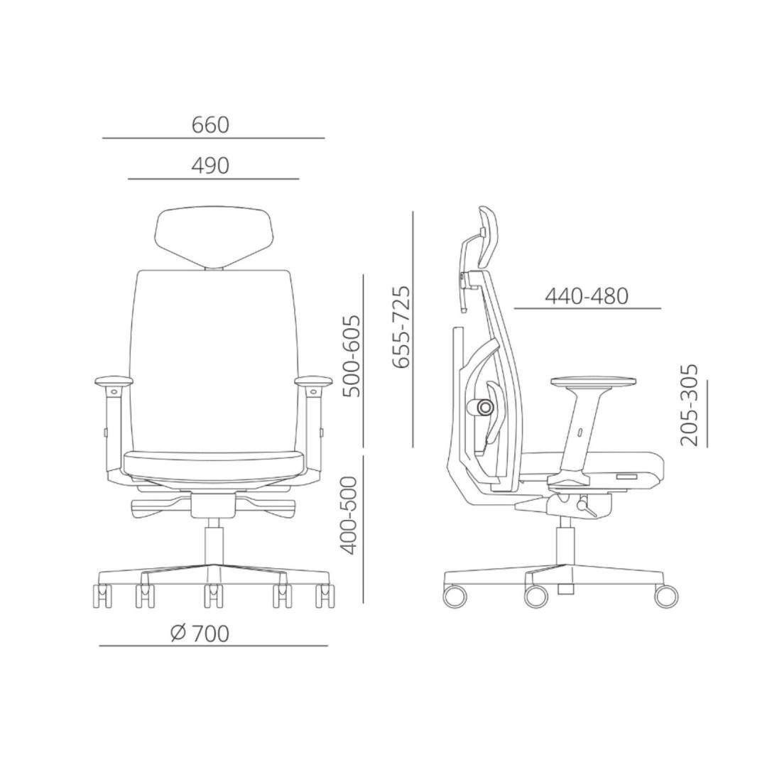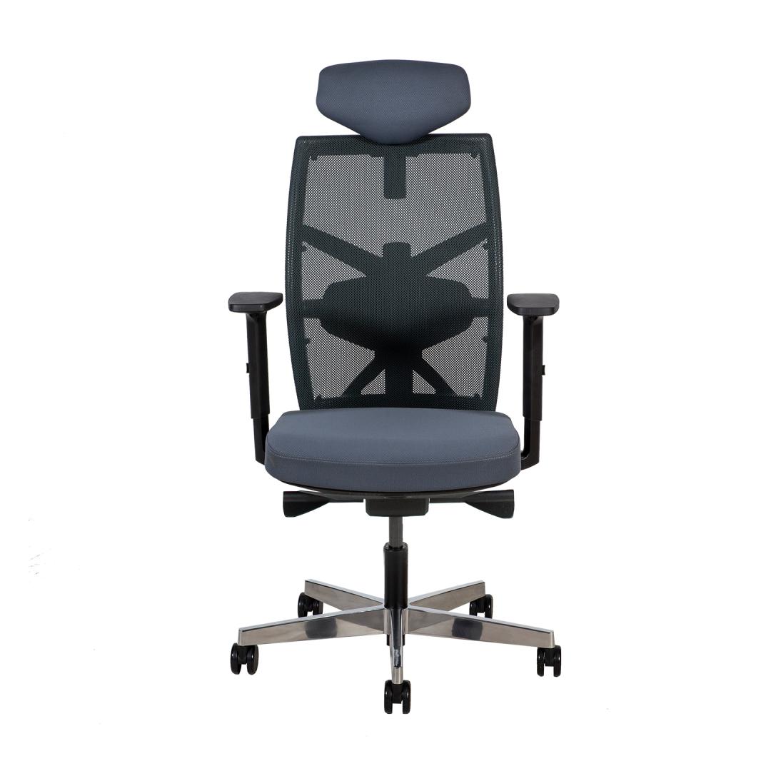 Työtuoli TUNE harmaa. Istuin päällystetty polyesterikankaalla, 50 000 Martindale. Selkänoja on päällystetty polyesteriverkolla. Tuolin muovirunko on musta. Tuolissa on synkronoitu mekanismi, lukitus useisiin asentoihin, automaattinen keinujäykkyyden säätö. Selkänojan korkeus on säädettävissä 50-60,5 cm. Säädettävä lannerangan tuki. Istuimen syvyys säädettävissä 44-48 cm. Istuinkorkeus säädettävissä kaasusäätimellä. Kolmessa suunnassa säädettävät mustat muoviset käsinojat. Käsinojien korkeus on säädettävissä 20,5-30,5 cm. Käsinojien tukipintaa voidaan liu'uttaa edestakaisin ja kääntökulmaa voidaan muuttaa päälle ja pois. Pääntuki on vapaasti kallistettavissa 30°:een, pääntuen korkeus on säädettävissä. 5-vartinen jalkatuki alumiinia, D70cm. Tuolissa on lattiaa säästävät jarrulliset pyörät, 65mm. Tuolin korkeus 111-128cm, istuinkorkeus 45,5-55,5cm, istuimen syvyys 44-48cm, istuimen leveys 49cm. Tuotteen mitat ovat 70x70xK111-128cm. Painoraja on 120kg.