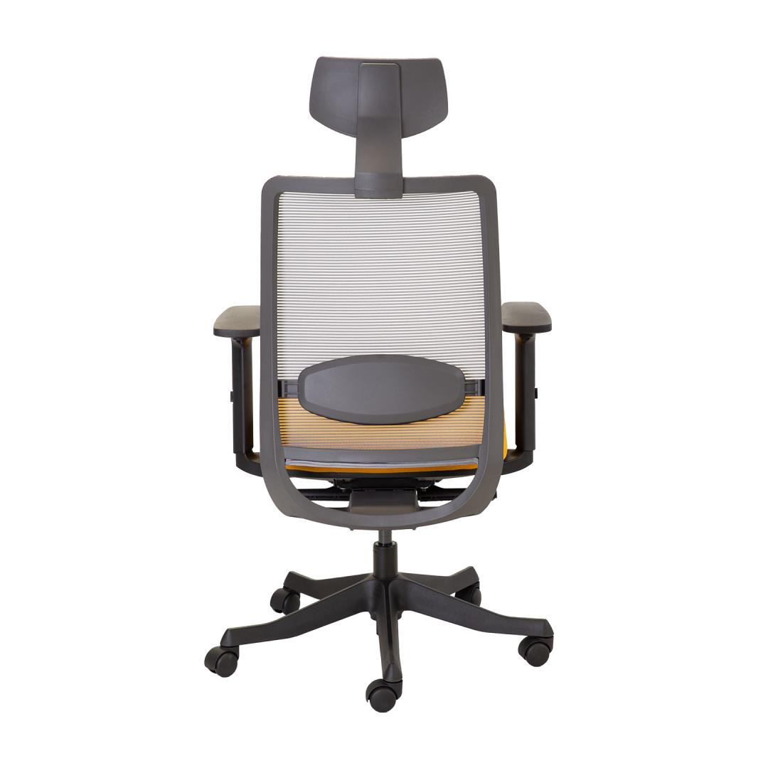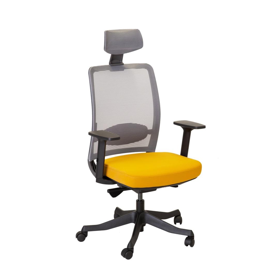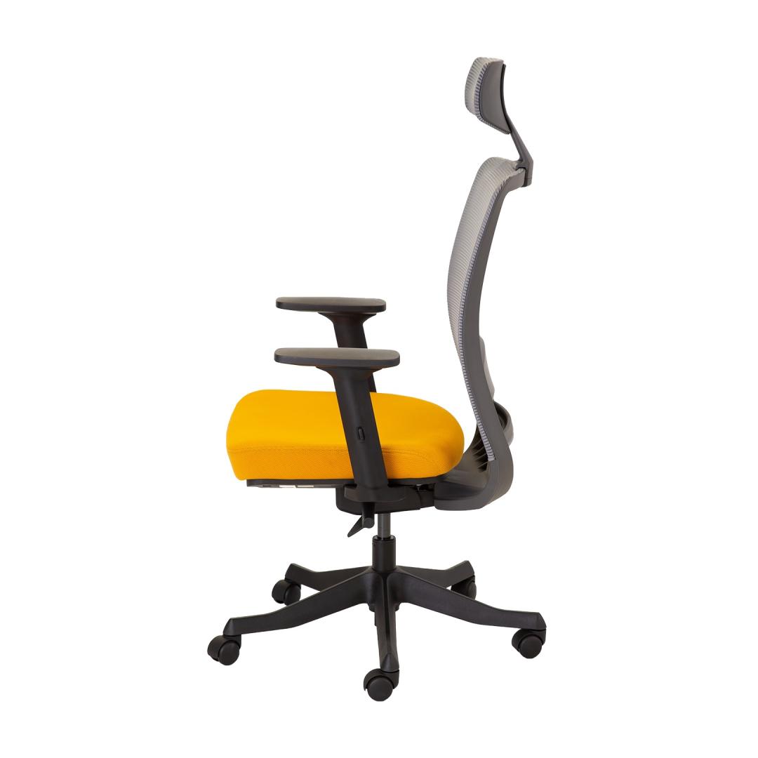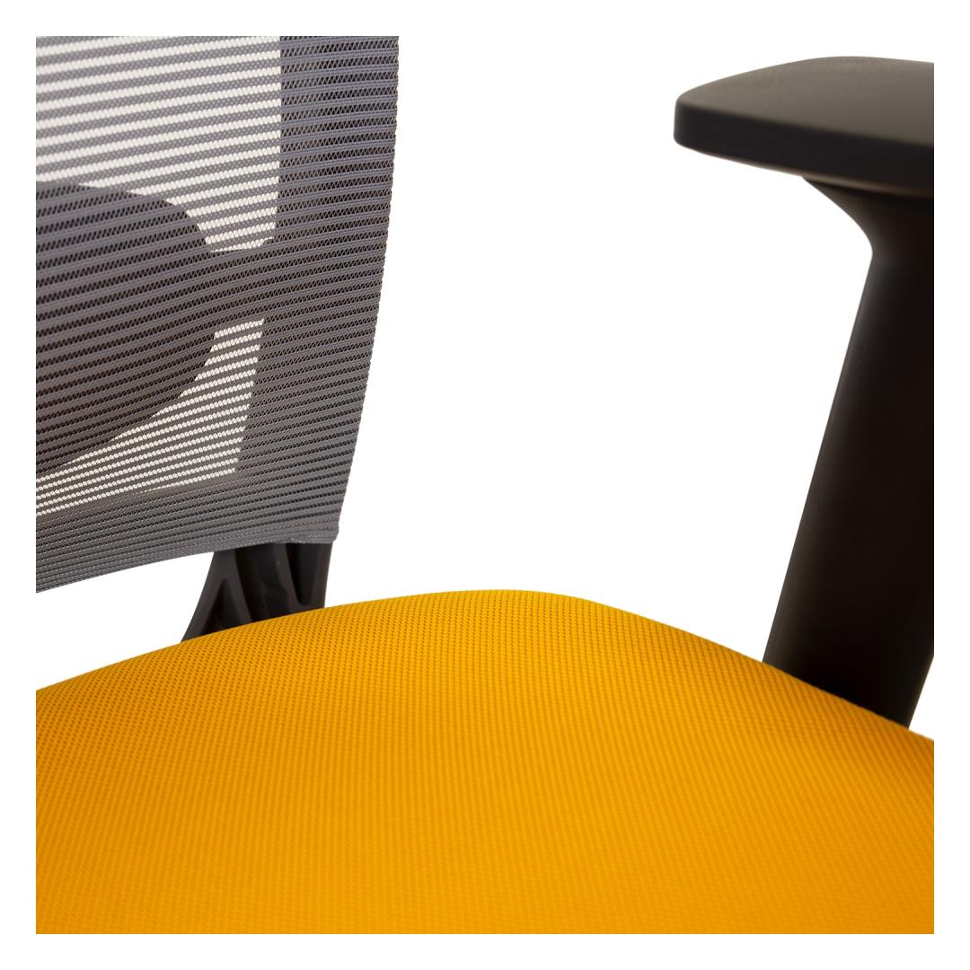 Työtuoli ANGGUN keltainen. Istuin päällystetty polyesterikankaalla, 50 000 Martindale. Selkänoja ja niskatuki on päällystetty polyesteriverkolla, joka takaa hyvän ilman liikkuvuuden. Synkronoitu mekanismi säätää keinun jäykkyyttä automaattisesti istujan painon mukaan. Säädettävä lannerangan tuki. Istuimen syvyys säädettävissä 39,5 ja 47,5 cm:n välillä. Istuimen korkeus säädettävissä kaasulla. Käsinojat mustaa muovia. Käsinojien syvyys ja kulma ovat säädettävissä. Käsinojien korkeus on säädettävissä 17,5-28 cm:n välillä. Pääntuen korkeus on säädettävissä. 5-vartinen jalkatuki mustaa muovia, D70cm. Tuolissa on muovipyörät, 50mm. Tuolin korkeus 116-130,5cm, selkänojan korkeus 52,5cm (pääntuen kanssa 72-76,5cm), istuimen korkeus 44-54cm, istuimen syvyys 39,5-47,5cm, istuimen leveys 45cm. Tuotteen mitat ovat 70x70xK116-130,5cm. Tuolin painorajoitus 120kg.