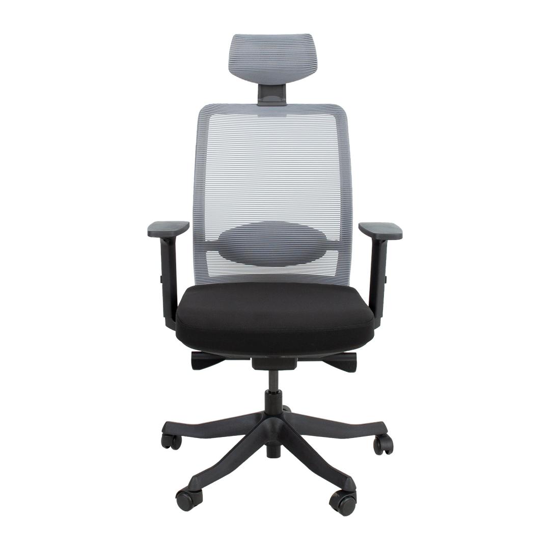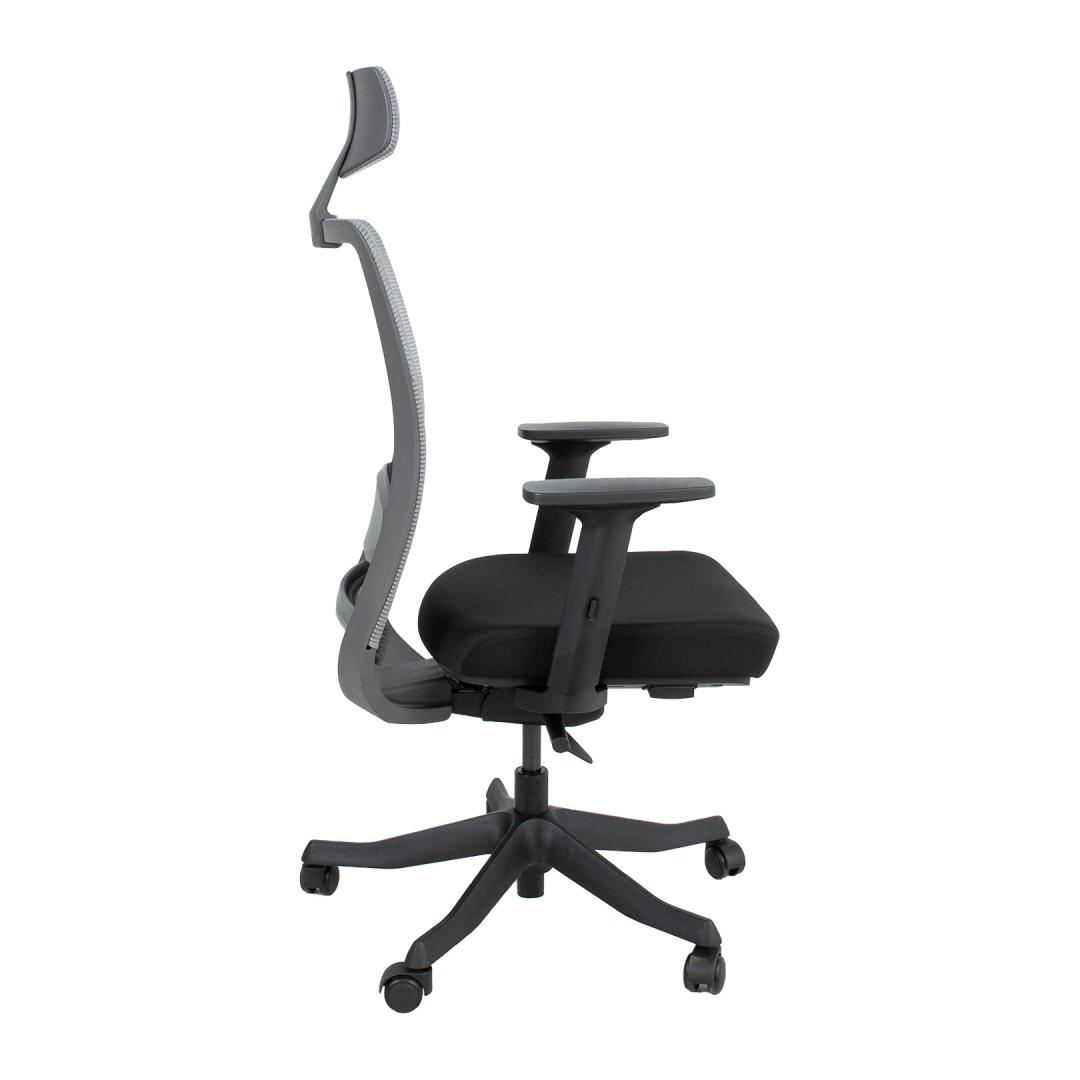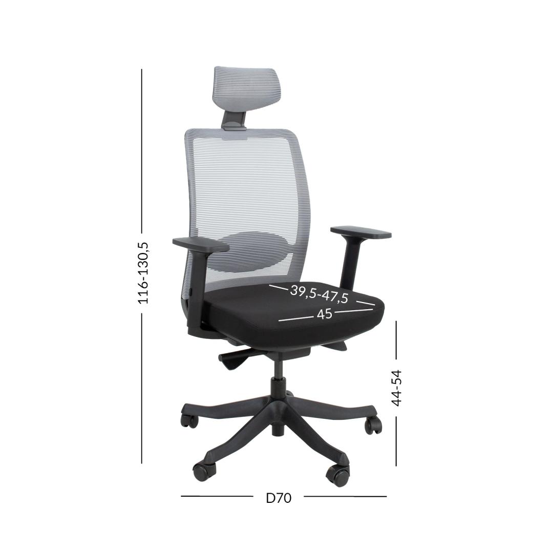 Työtuoli ANGGUN, musta. Istuin on päällystetty polyesterikankaalla, 50 000 Martindale. Selkänoja ja niskatuki on päällystetty polyesteriverkolla, joka takaa hyvän ilman liikkuvuuden. Painoherkkä synkronimekanismi säätää keinun jäykkyyttä automaattisesti istujan painon mukaan. Säädettävä lannerangan tuki. Istuimen syvyys säädettävissä välillä 39,5-47,5 cm. Istuinkorkeus on säädettävissä kaasusäätimellä. Käsinojat mustaa muovia. Käsinojien syvyys ja kulma ovat säädettävissä ja korkeus on säädettävissä 21-31 cm:n välillä. Pääntuen korkeus on säädettävissä. 5-vartinen muovinen jalkalista on musta, D70cm. Tuolissa on muovipyörät, 50mm. Tuolin kokonaismitat ovat 70x70xK116-130,5cm. Tuolin korkeus 116-130,5cm, selkänojan korkeus 52,5cm (pääntuen kanssa 72-76,5cm), istuimen korkeus 42-52cm, istuimen syvyys 39,5-47,5cm, istuimen leveys 45cm. Painoraja 120kg.