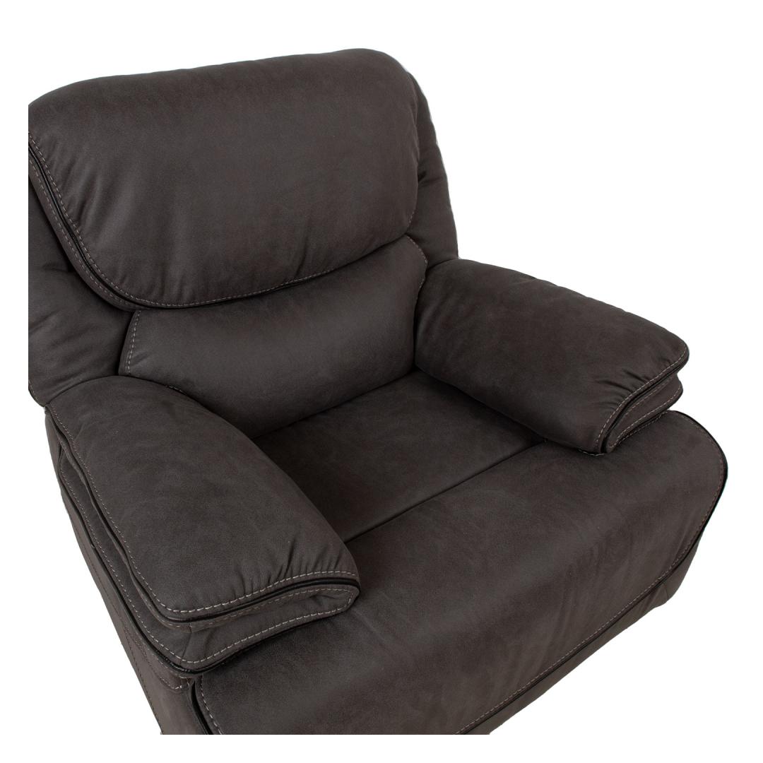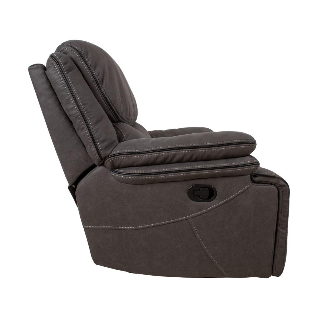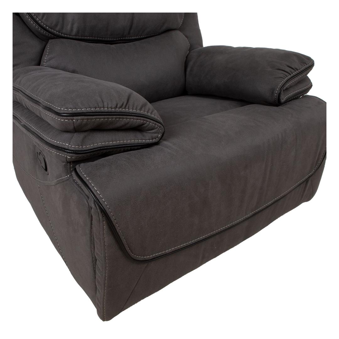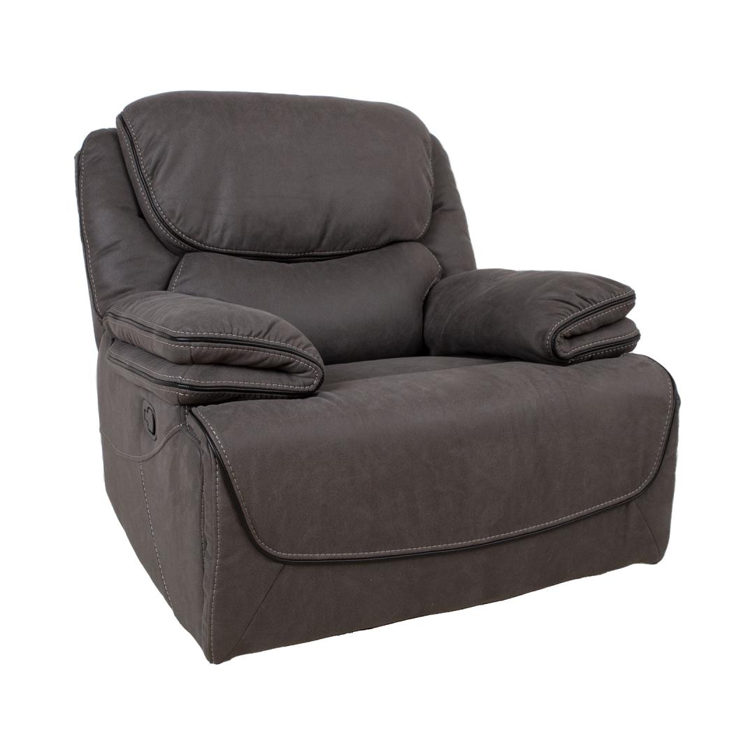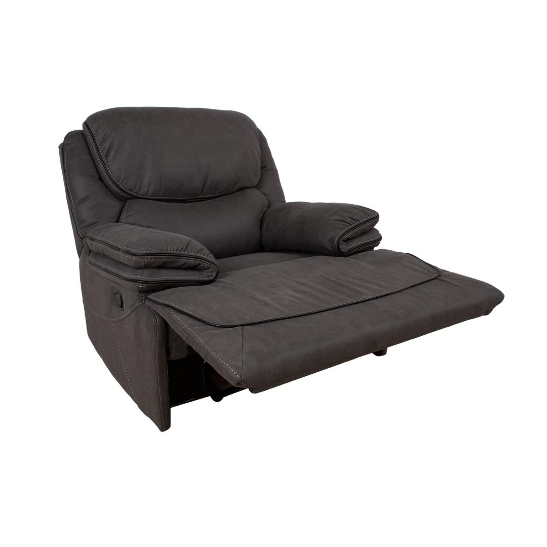 Nojatuoli GORDY manuaalinen lepotuoli 100x93xH106cm, harmaa. Nojautuva nojatuoli, jossa on manuaalinen mekanismi jalkatuen asennon muuttamiseksi. Selkänoja liikkuu pehmeästi, kun jalkatuki nostetaan ylös. Jalkatuen nostaminen tapahtuu vetämällä tuolin oikealla ulkosivulla olevaa vipua ylöspäin. Jalkatuen painaminen alaspäin lukitsee sen automaattisesti alkuperäiseen asentoonsa. Verhoilu: pehmeä keinonahkaa muistuttava polyesterikangas. Runko ja ripustus: vaneri, puu, metalli. Taskujouset. Verhoilu: polyuretaanivaahto 20-28 kg/m³. Kokonaismitat 100x93xK106cm. Istuimen leveys 49cm, istuimen syvyys 54cm, istuimen korkeus 49cm. Selkänojan korkeus 69cm. Käsinojan korkeus maasta 64cm. Nojatuolin selkänoja on viimeistelty ja se voidaan sijoittaa keskelle huonetta. tk