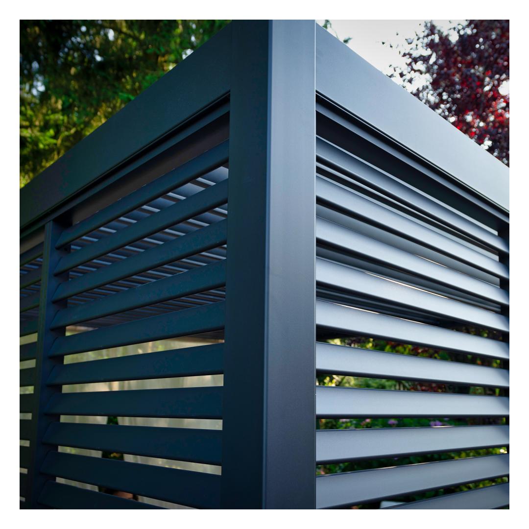 MIRADOR 93x235cm, tummanharmaa. Paneelin leveys 93cm ja korkeus 235cm. Seinä on valmistettu alumiinista ja pinnoitettu tummanharmaalla jauhemaalilla. Sivupylvään mitat ovat 60x25mm, lamelli 65x15mm. Lamellipaneeleilla voidaan peittää koko katos tai vain osa siitä, ja ne voidaan yhdistää erityyppisiin verhoihin tai rullaverhoihin. (esim. 3 metrin aukon peittämiseksi on ostettava 3 paneelia). Tutustu muihin MIRADOR-markiiseihin saatavissa oleviin verhoihin ja verhoseiniin!