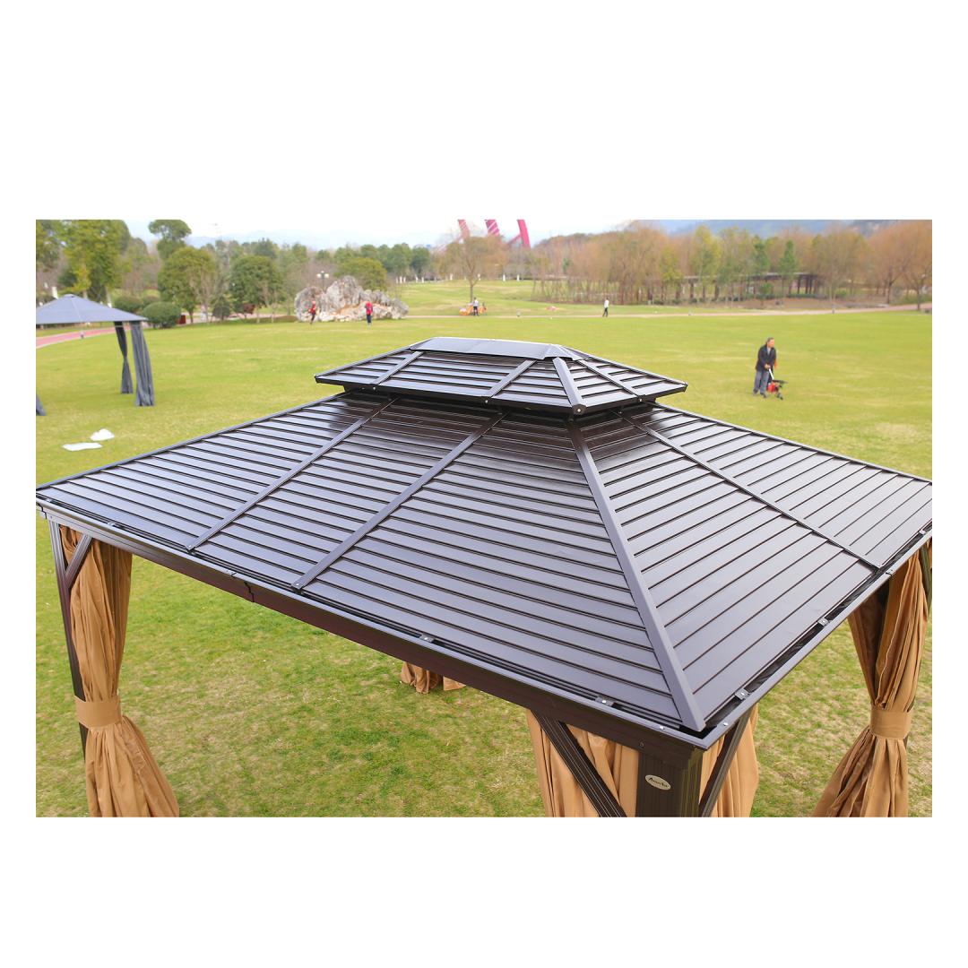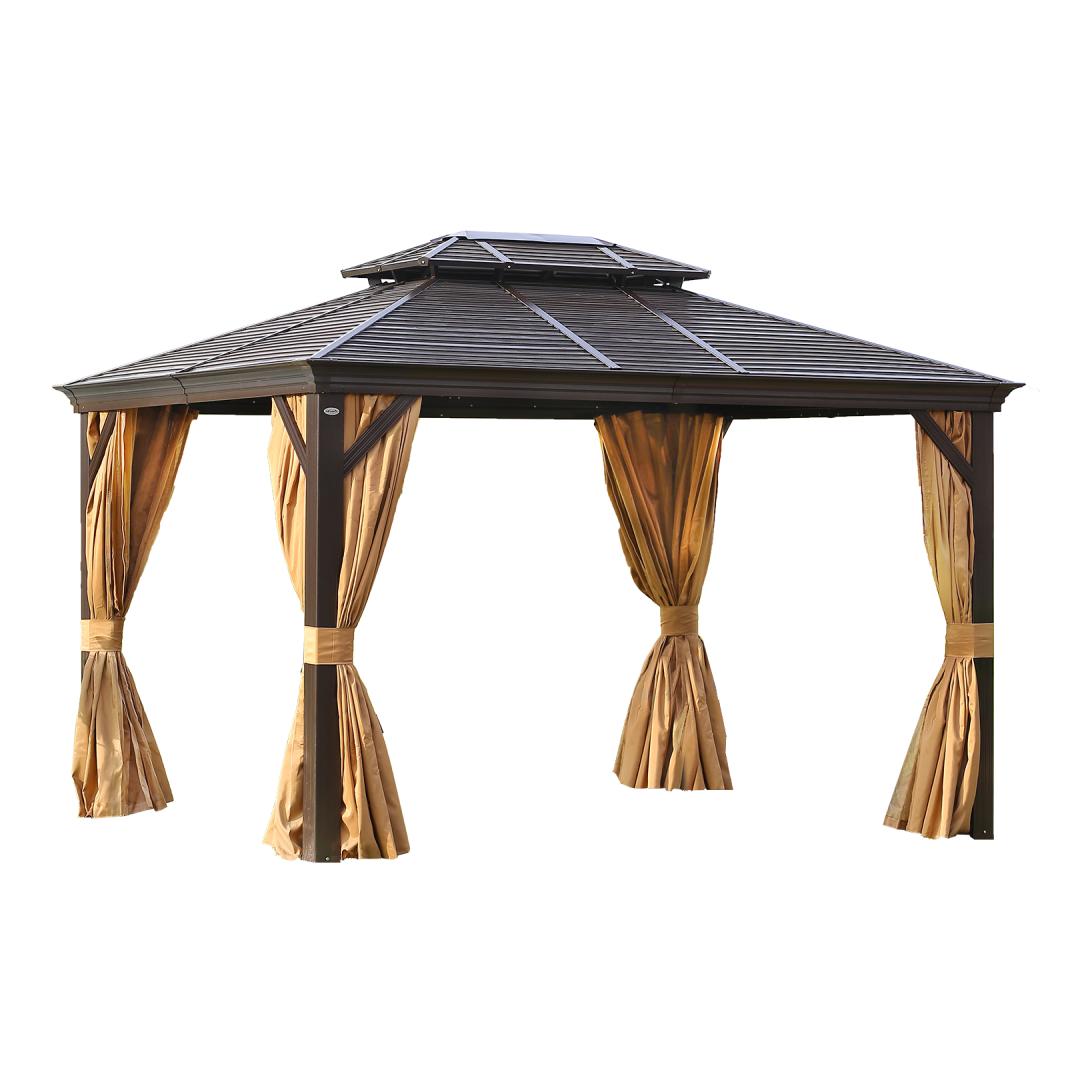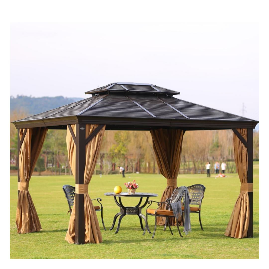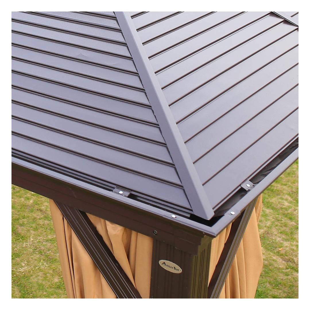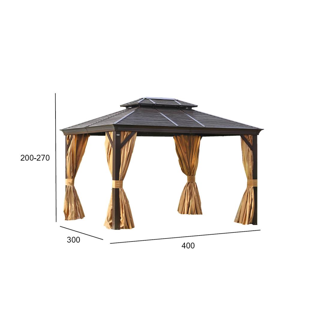 Katos SUNSET 3x4xH2/2,7m, ruskea/beige. Tyylikäs ja toimiva markiisi/katos tarjoaa suojaa ja varjoa kevyeltä sateelta ja paahtavalta auringolta, jolloin voit nauttia ulkoilmasta säästä ja vuorokaudenajasta riippumatta. Markiisin kaikilla sivuilla on beige polyesterikangasverhot (180g/m²) ja nailonista valmistetut hyttysverkot, jotka sulkeutuvat lukolla. Markiisin päärakenne on valmistettu alumiinista. Kaikki rungon osat on viimeistelty ruskealla pulverimaalilla. Sivutolppien mitat ovat 120x120mm, poikkipalkin mitat ovat 130x100mm, kattoristikot ovat 52x40x1mm, 44x31x1mm. Sinkitty metallikatto paksuus 4mm. VAROITUS: Äärimmäisissä sääolosuhteissa tai myrskyvaroituksissa katosta ei saa jättää ilman valvontaa. Äärimmäisissä sääolosuhteissa, esim. myrskyvaroitus tai katos ei ole vaarassa vaurioitua voimakkaan tuulen, sateen tai lumen vuoksi. HUOLTO: Markiisin käyttöiän pidentämiseksi suosittelemme, että se puretaan kesäkauden lopussa ja säilytetään viileässä, kuivassa ja hyvin ilmastoidussa tilassa. Jos markiisi jätetään pystyyn talveksi, on huolehdittava siitä, ettei katolle kerry liikaa lunta. Poista kertynyt lumi mahdollisimman pian. Poista hyttysverkot ja verhot kesäkauden lopussa. Puhdista ja kuivaa verhot ennen niiden varastointia.