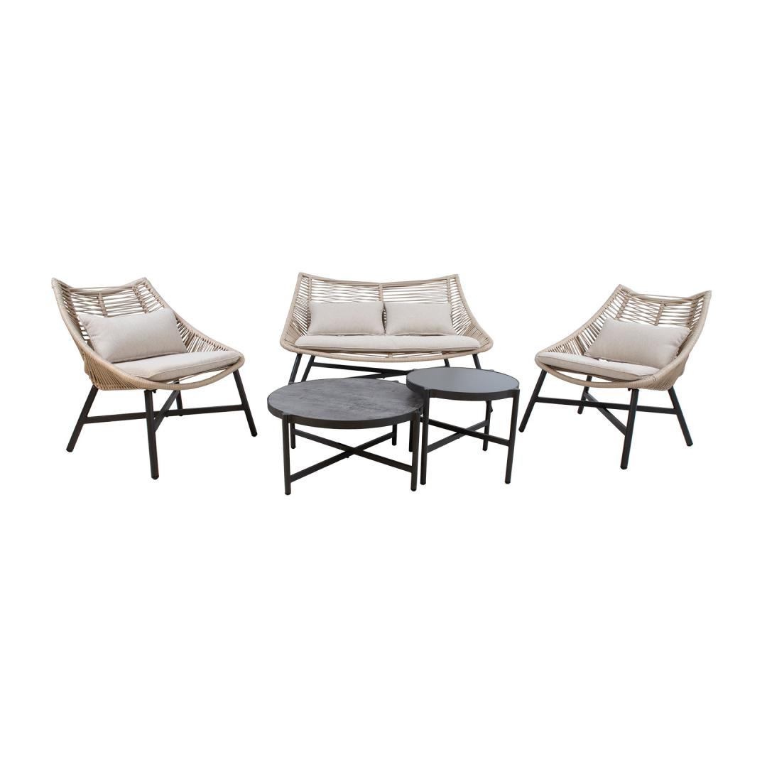 Puutarhakalusteet HELSINKI sohva, 2 tuolia ja 2 pöytää, beeþ