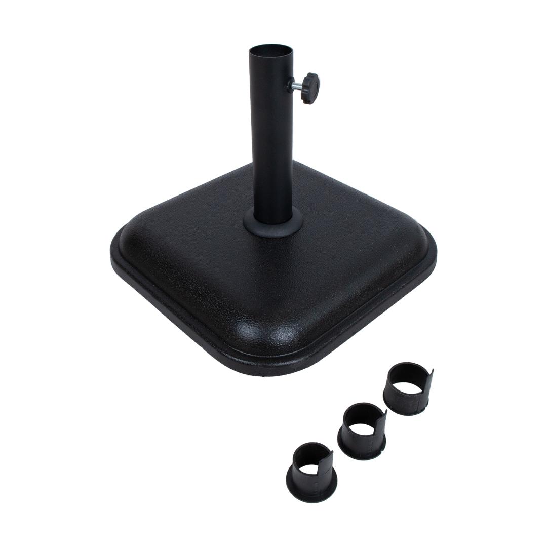 Aurinkovarjo 36x36x6cm/12kg. Aurinkovarjo on valettu betonista ja maalattu mustaksi. Teräsputken pituus on 28cm. Putken päässä on 3 muovirengasta D30/35/38mm. Valitse rengas, joka vastaa aurinkovarjon kokoa. HUOLTO: kesäkauden päätyttyä suosittelemme aurinkovarjojen säilyttämistä sisätiloissa. Kesäkauden jälkeen aurinkovarjot tulee säilyttää viileässä, kuivassa ja hyvin tuuletetussa tilassa. Päikesevarjualus 36x36x6cm/12kg. Päikesevarjualus on valatud betoonist ja värvitud mustaks. Terasest kinnitustoru pikkus on 28cm. Toru otsas on 3 plastikrõngast D30/35/38mm. Valige päikesevarjujala mõõduga sobiv rõngas. HOIUSTAMINE: suvehooaja lõppedes soovitame päikesevarjualuseid hoiustada siseruumides. Kasutage hoiustamiseks jahedat, kuiva ning hea ventilatsiooniga ruumi.