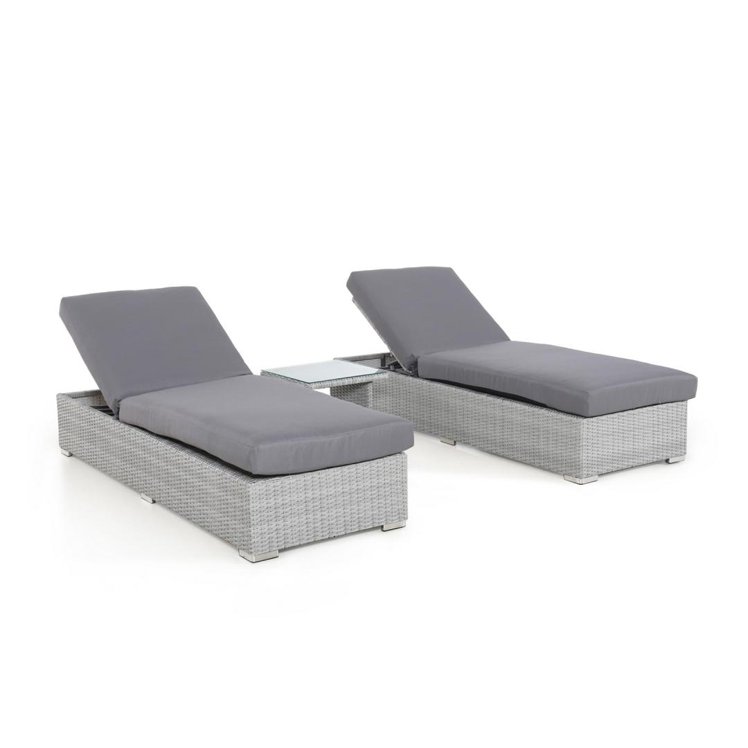 Lepotuolisarja ASCOT harmaa, 2 lepotuolia 195x69xH40/90cm, sivupöytä 48x48xH37cm, alumiini, muovipunos