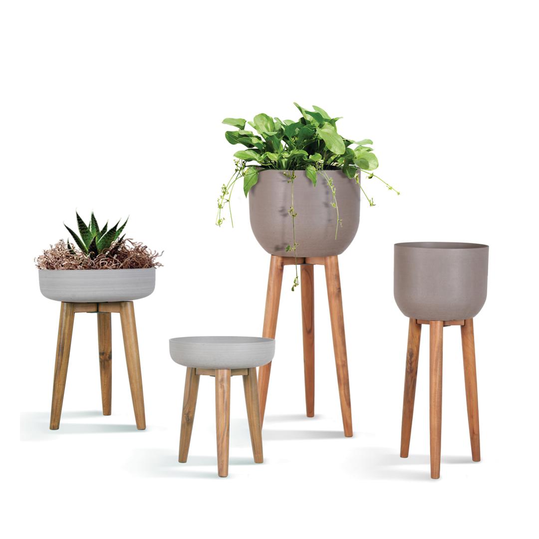 Kukkaruukku SANDSTONE puujaloilla D39xK51cm, harmaa