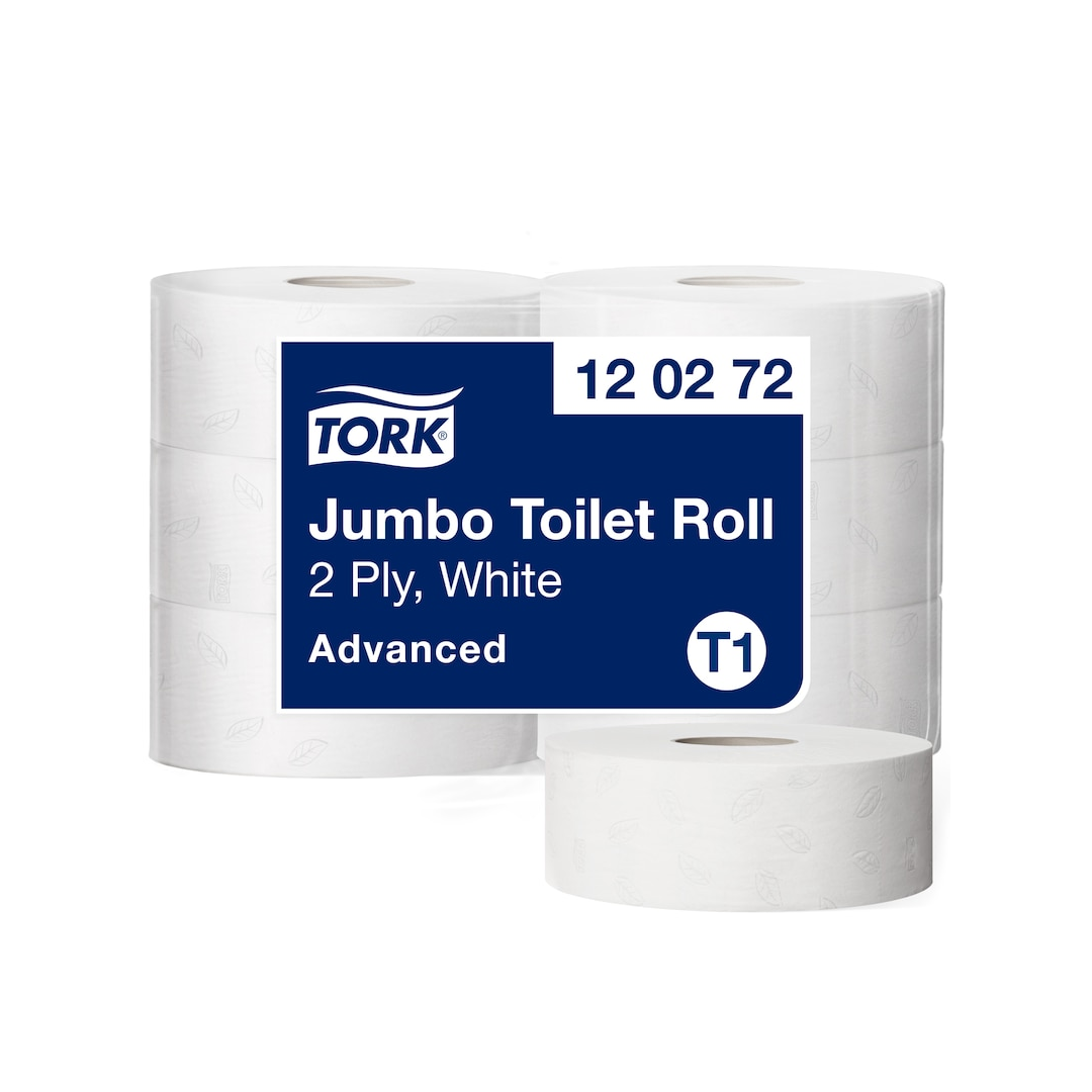 Tork Jumbo -järjestelmä tarkoittaa tehokasta ajankäyttöä, pienempiä kustannuksia ja enemmän wc-paperia kuin tavalliset rullapaperit. Tork Jumbo Advanced 2-kerroksisen rullapyyhepaperin avulla voit tasapainottaa kustannukset ja suorituskyvyn, ja se sopii erinomaisesti vilkkaasti liikennöityihin tiloihin.