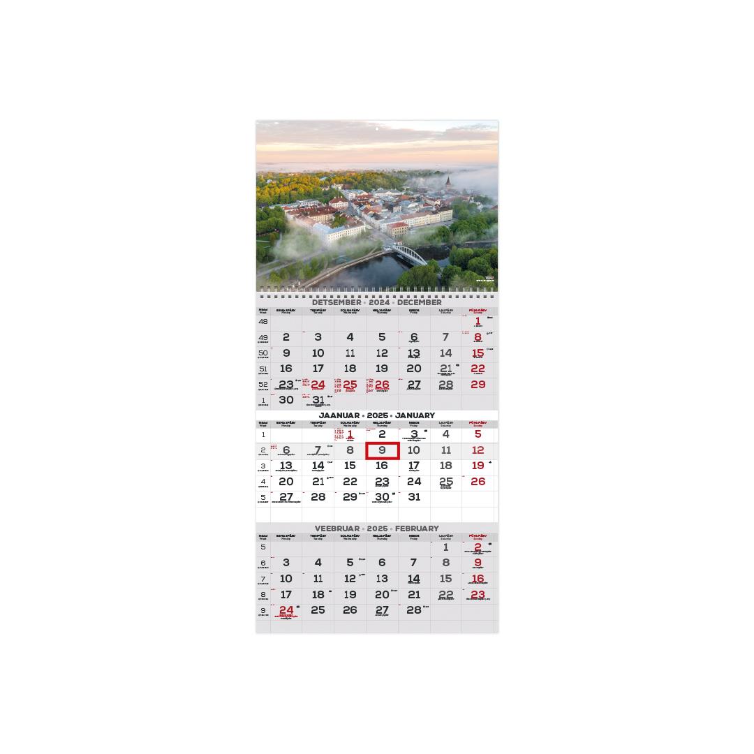 Koko: 297×630 mm Kieli: Kieli: EE, EN yleiset vapaapäivät, kansalliset ja kansalliset kalenteripäivät, liputuspäivät, 38 maan yleiset vapaapäivät lyhenteineen, auringonnousu- ja -laskuajat (Tallinna), kuun vaiheet, horoskooppimerkit, vuodenaikojen alkamisajat kellonaikoineen, edeltävät ja seuraavat vuodenaikojen alkamisajat